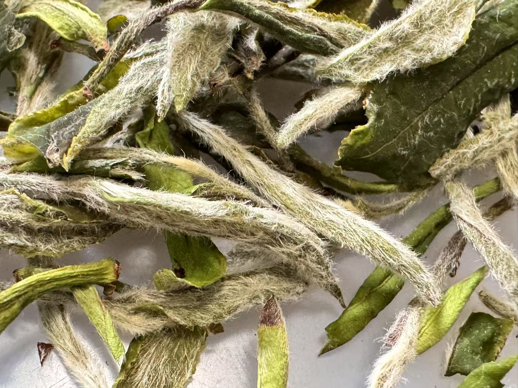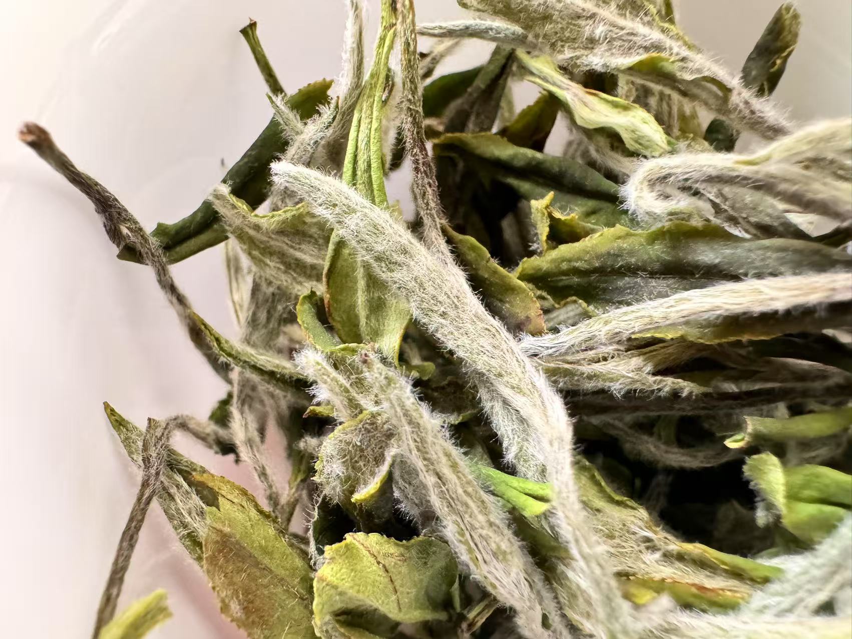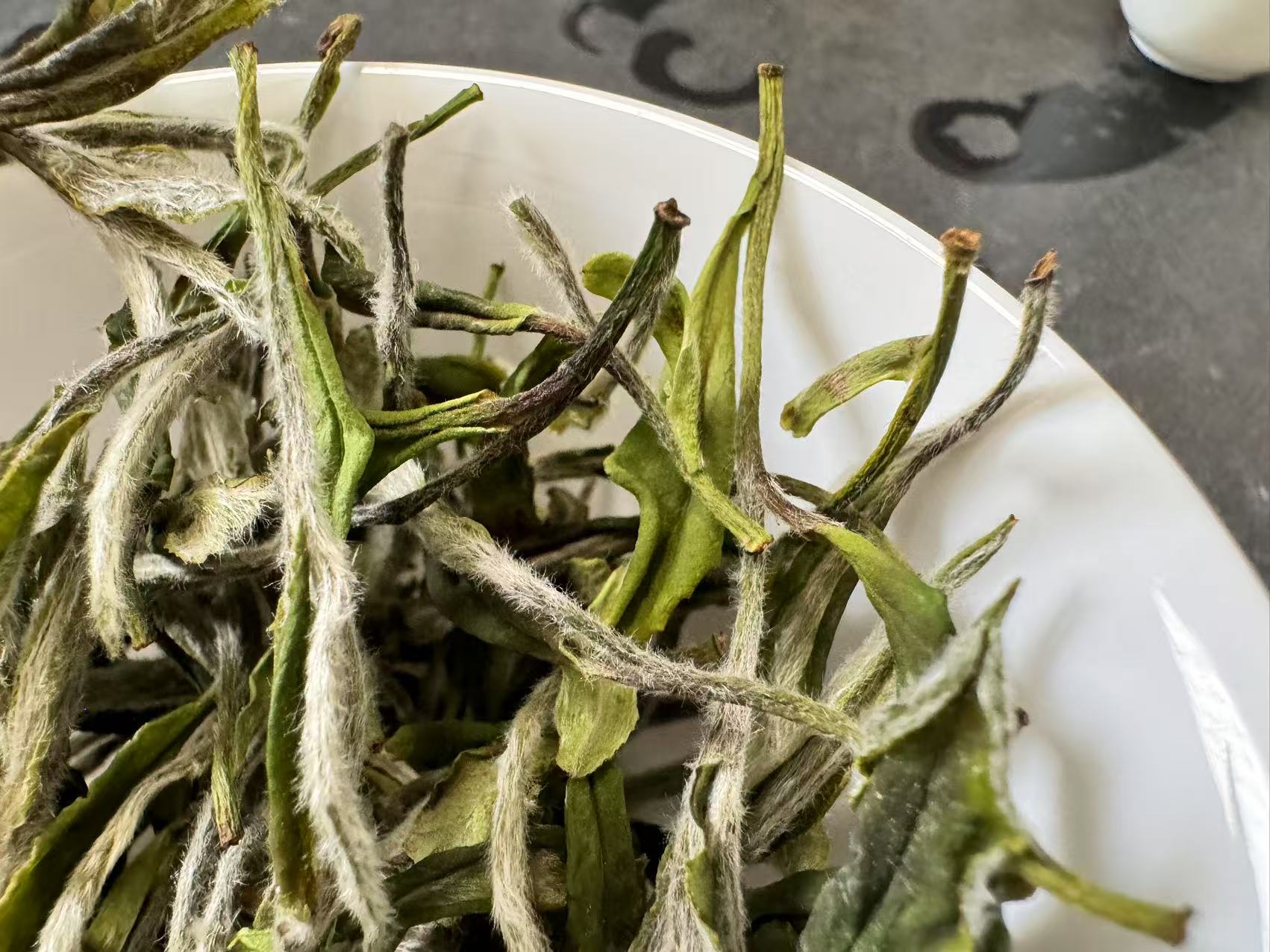 这款白小生,在大白的等级里,差不多是一级牡丹,但是大白茶品种芽头没有大毫茶芽头大,所以看起来没那么肥壮。