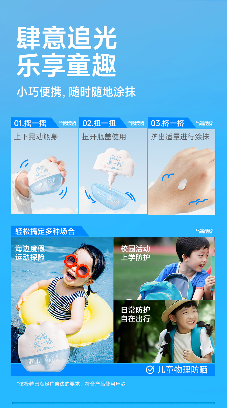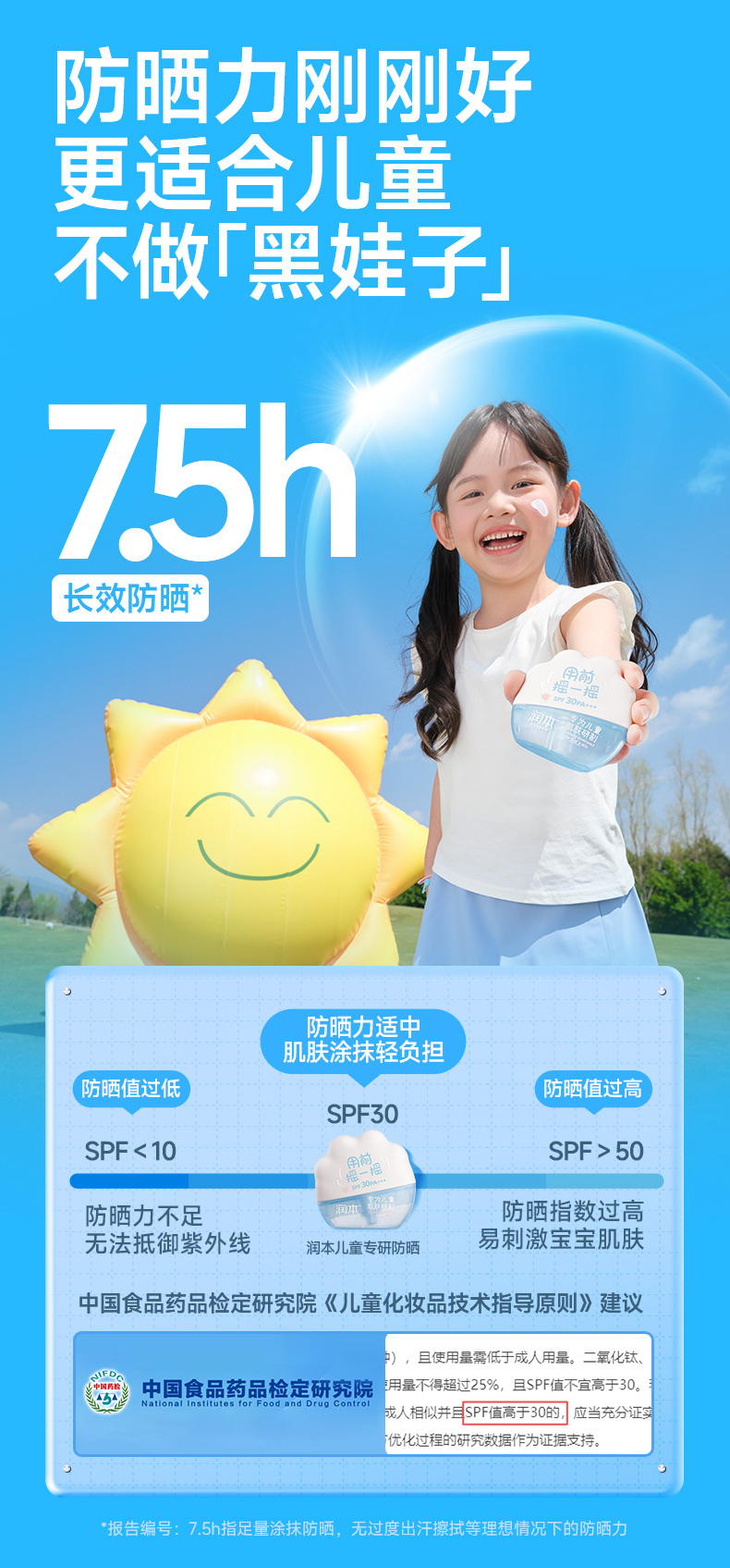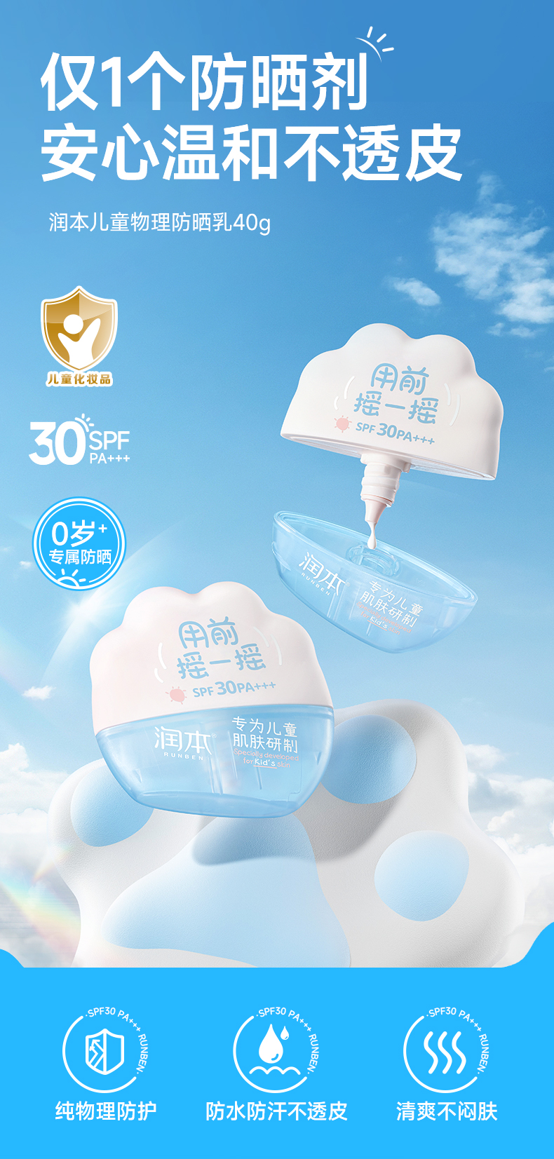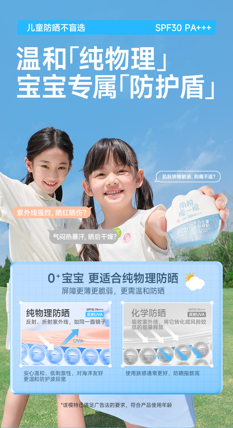 润本儿童防晒霜婴儿宝宝敏肌可用隔离紫外线男女童物理防晒乳