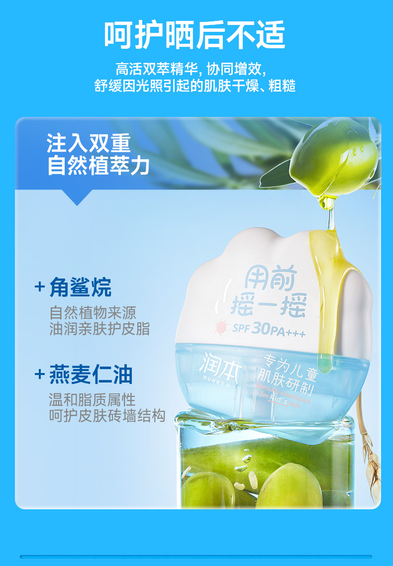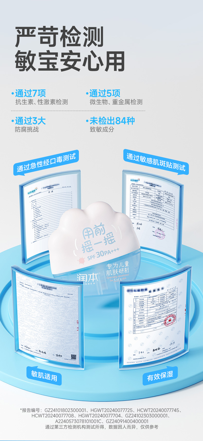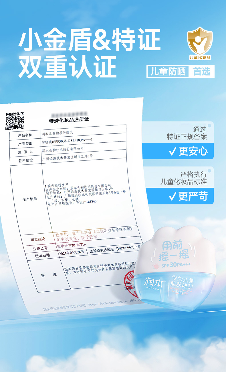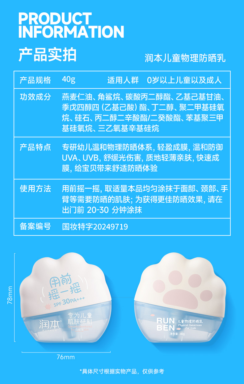 润本儿童防晒霜婴儿宝宝敏肌可用隔离紫外线男女童物理防晒乳