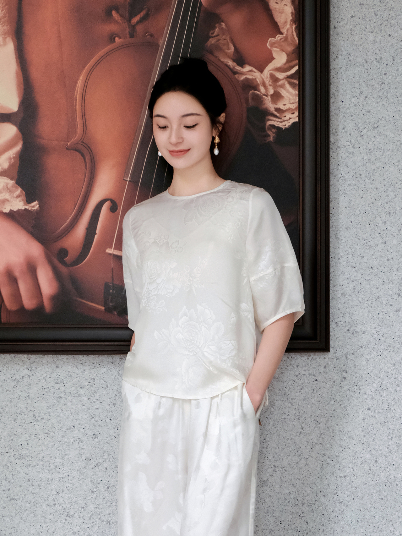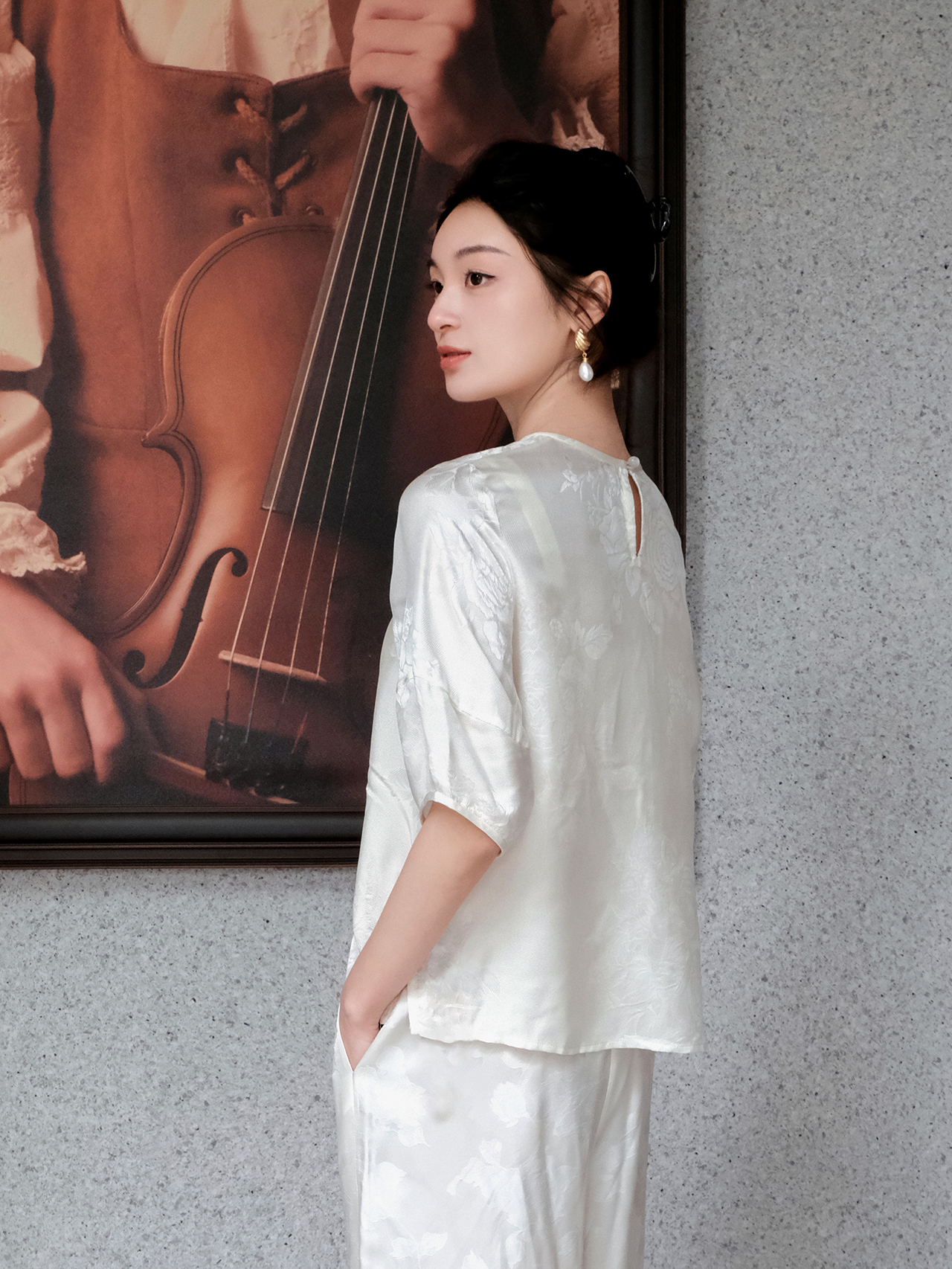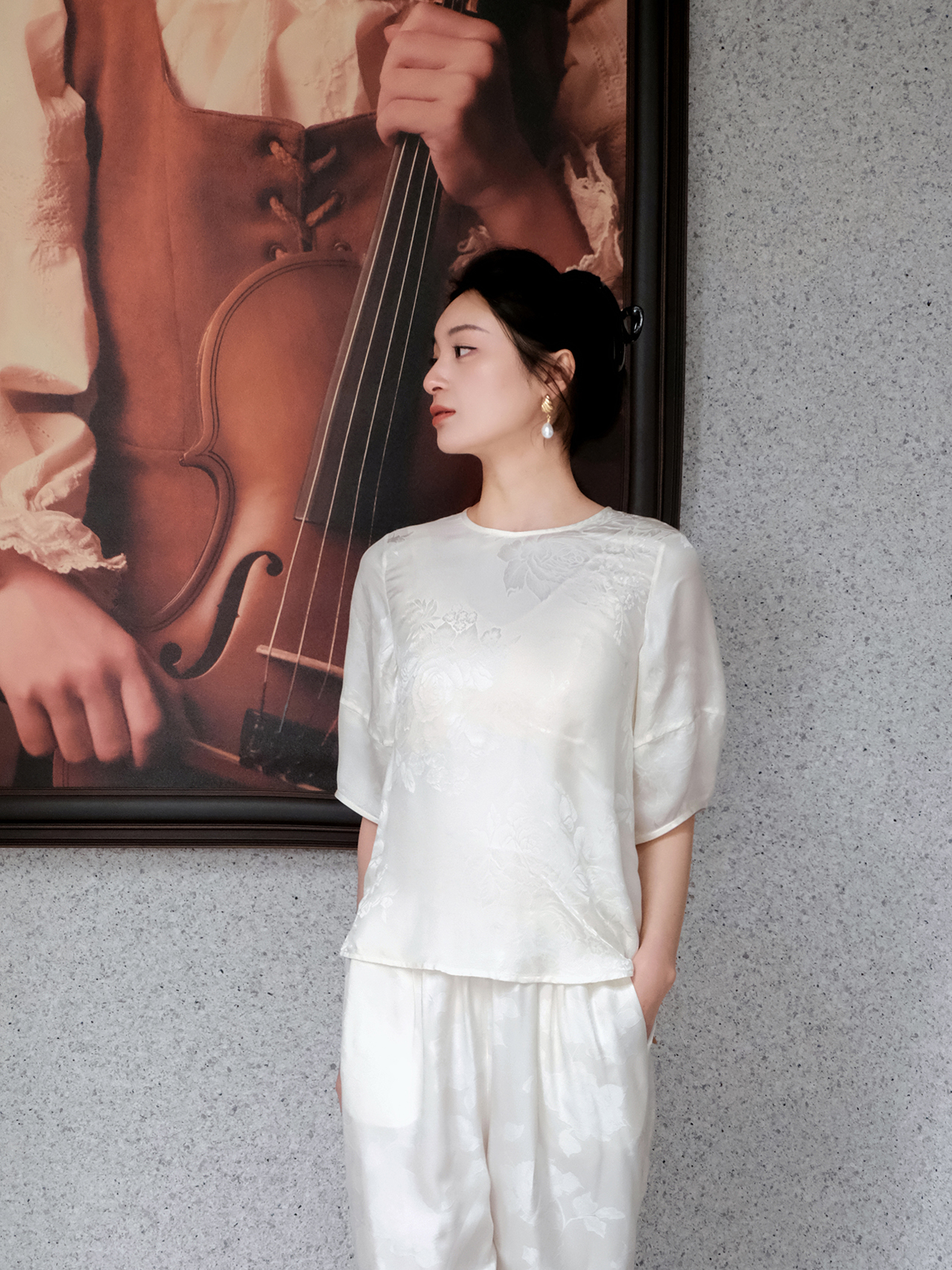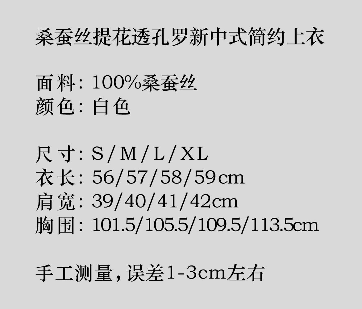 盛唐婧 |桑蚕丝提花透孔罗新中式简约上衣-白色