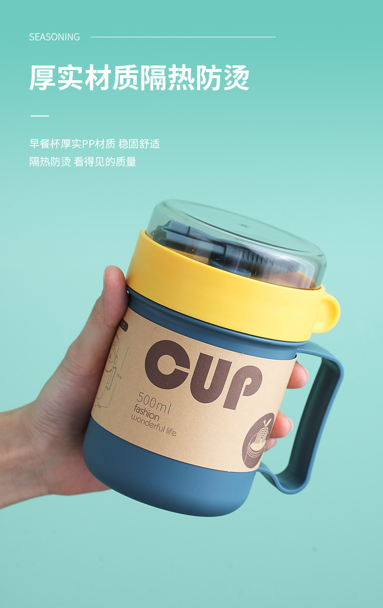 高颜值早餐杯 牛奶杯辅食杯 便携日式汤杯送勺子