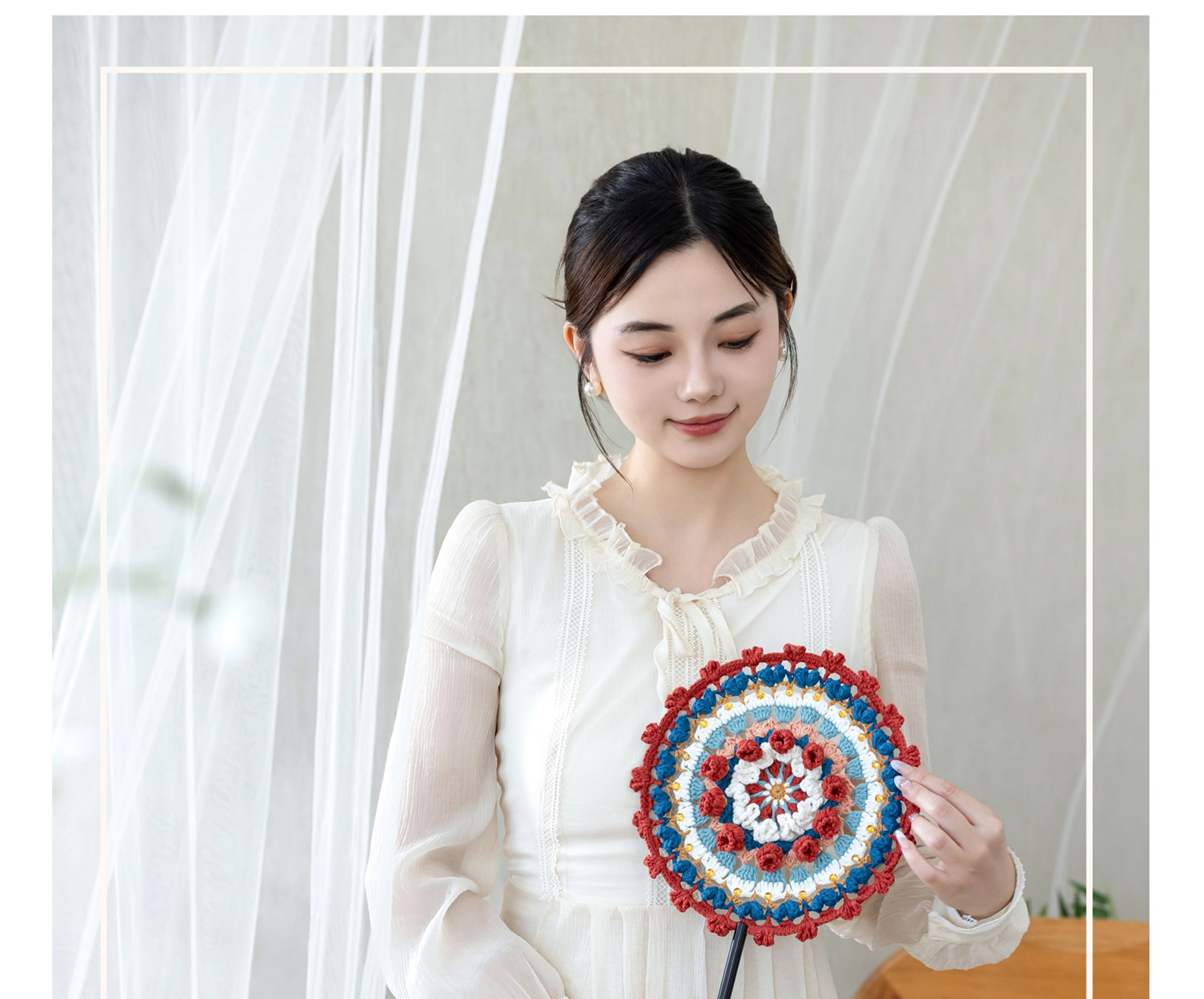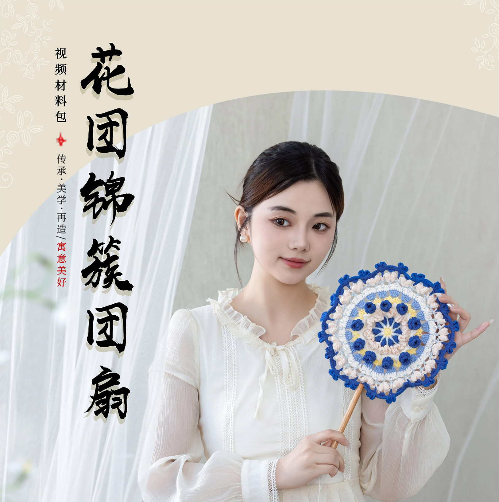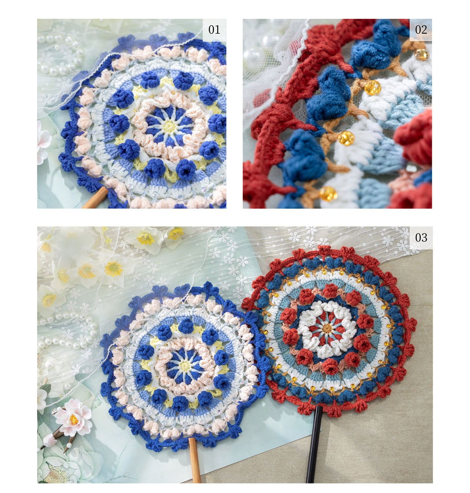 苏苏姐家花团锦簇团扇手工DIY编织钩针毛线4股牛奶棉自制材料包