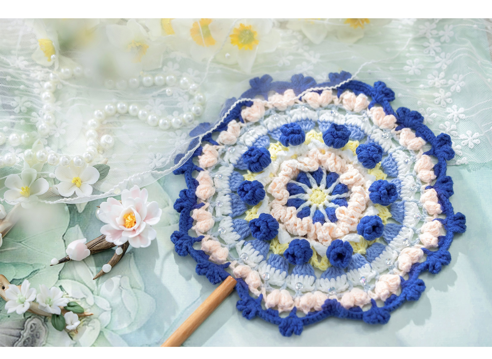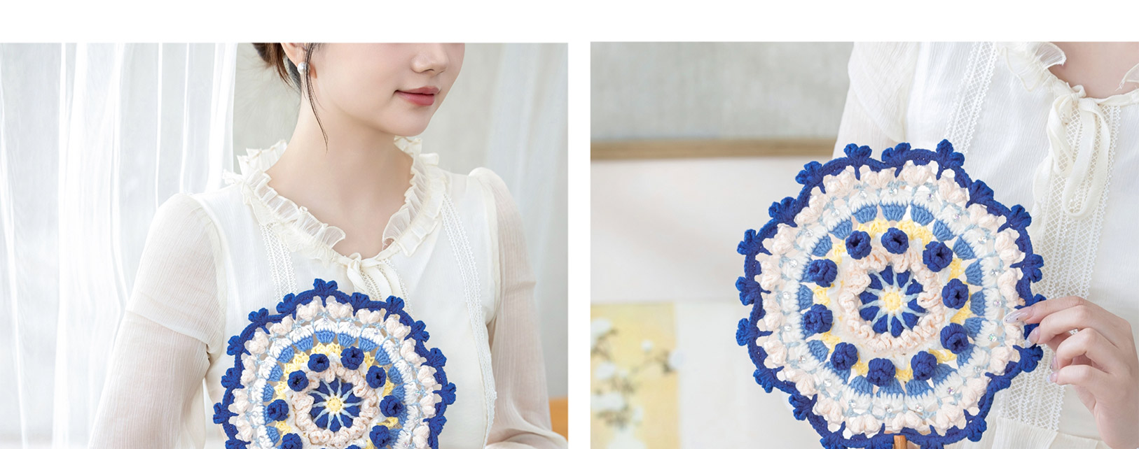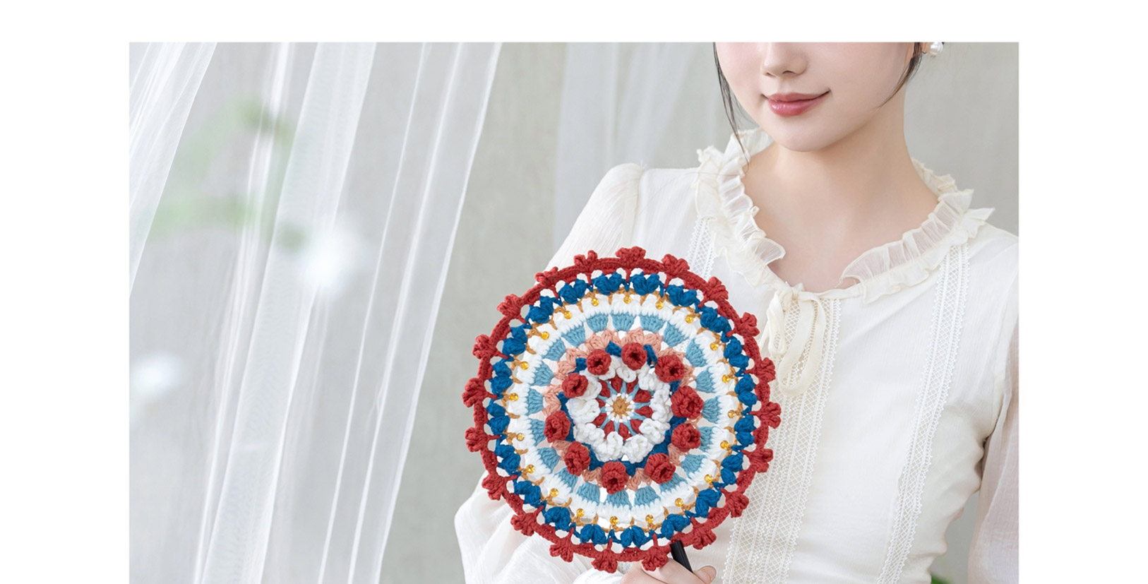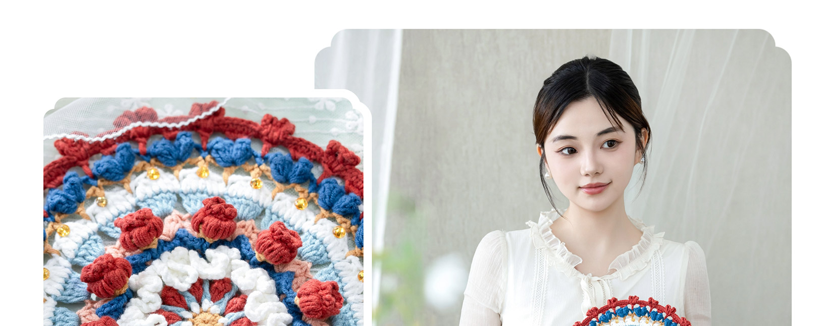 苏苏姐家花团锦簇团扇手工DIY编织钩针毛线4股牛奶棉自制材料包