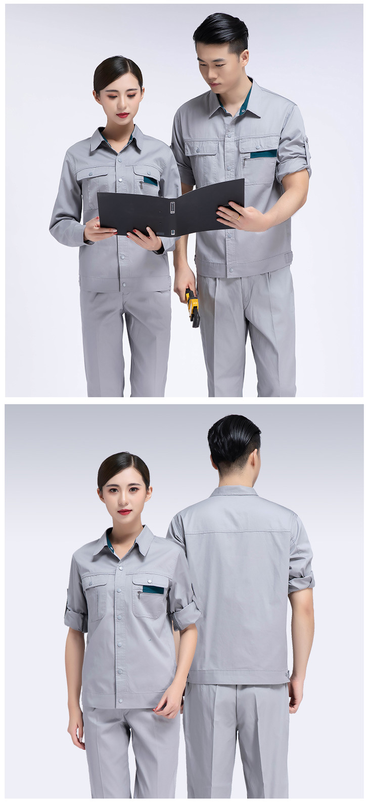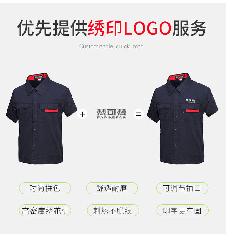梵可梵夏季工作服套装男女款长袖汽修劳保工程厂服工地工服定制