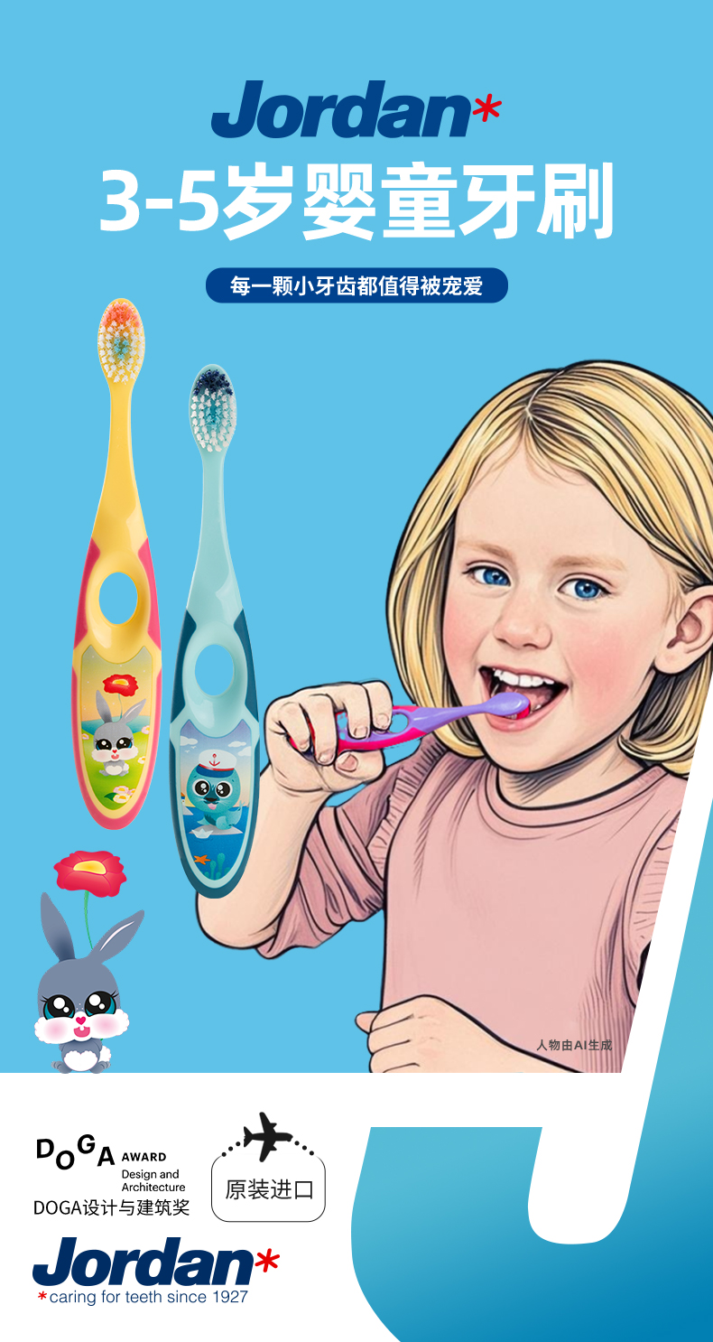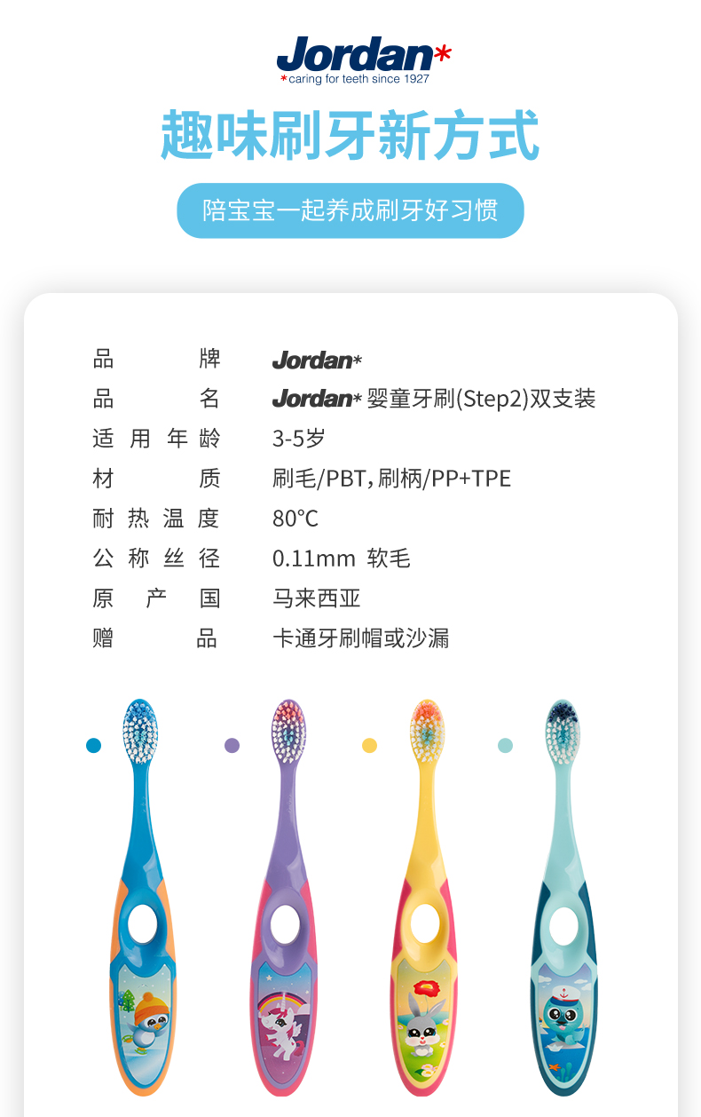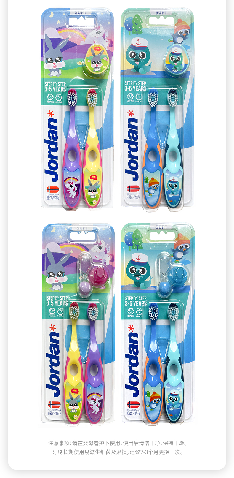 JordanStep2婴童牙刷双只装 (3-5岁)颜色随机