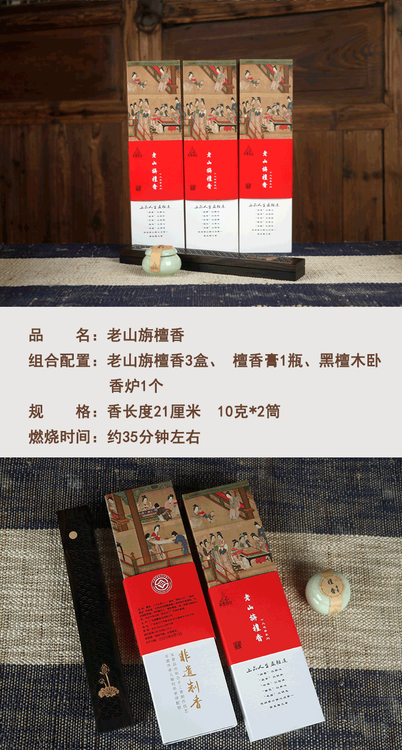 【茶香器韵】老山旃檀香 线香 30支*2/盒 3盒装 买就赠香炉+檀香香膏