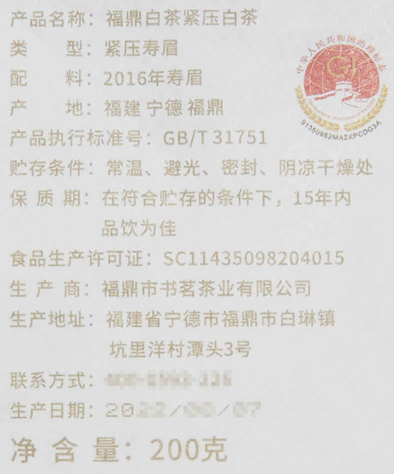 得雨芽丨柴头山 典藏砖 寿眉 福鼎白茶 方砖 2016年 200g