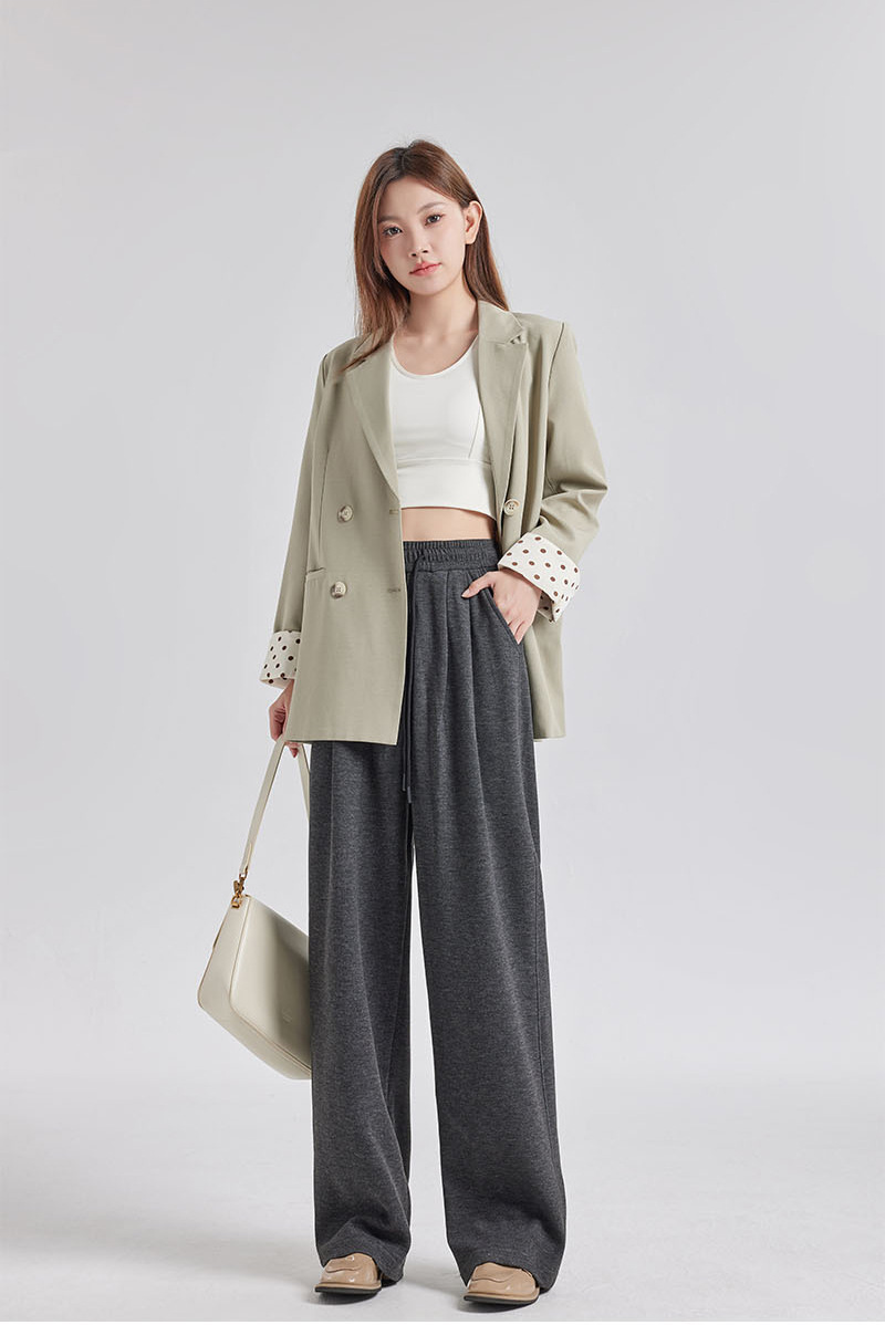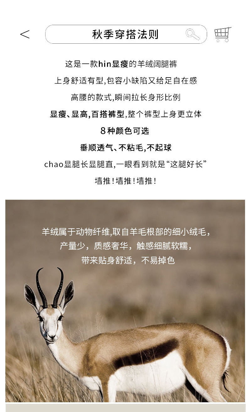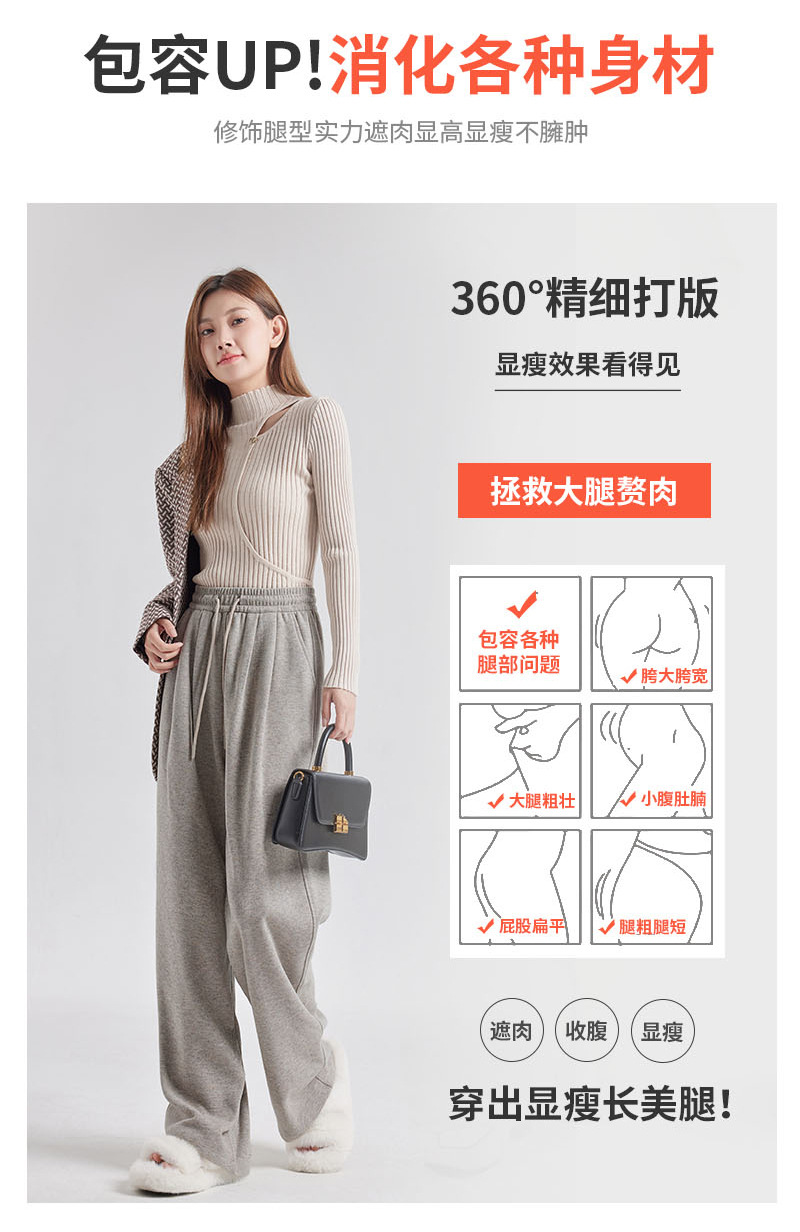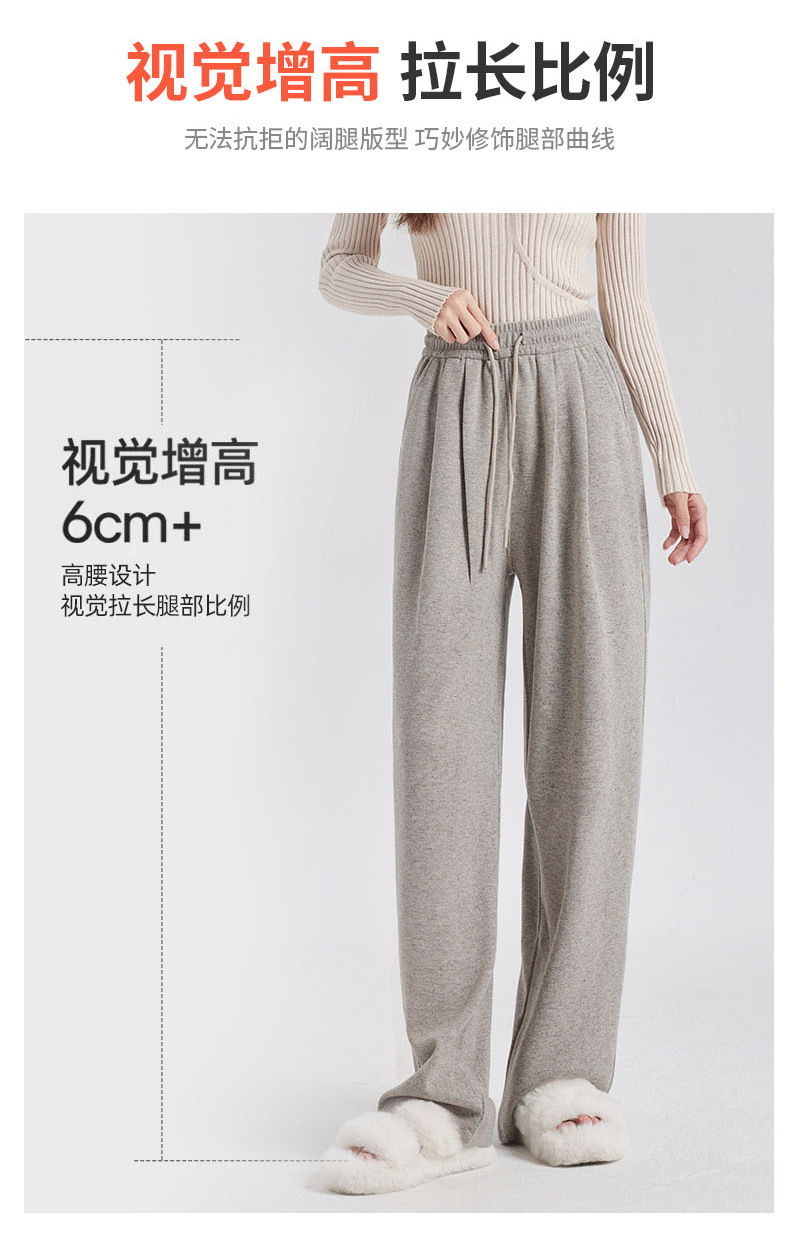 【松弛感】羊绒蚕丝阔腿裤 高腰显瘦 松紧腰休闲直筒裤