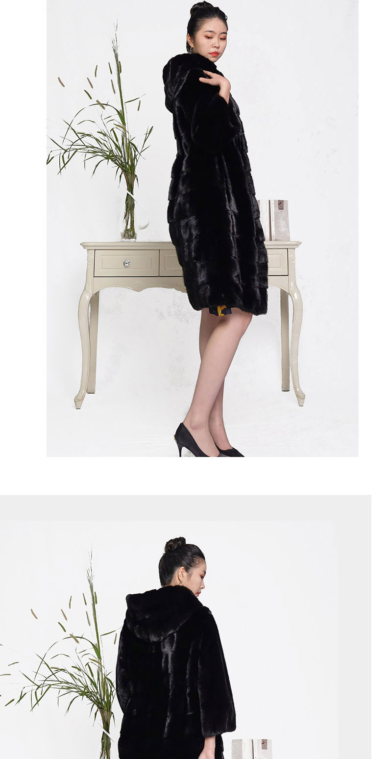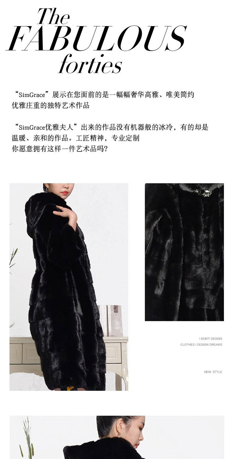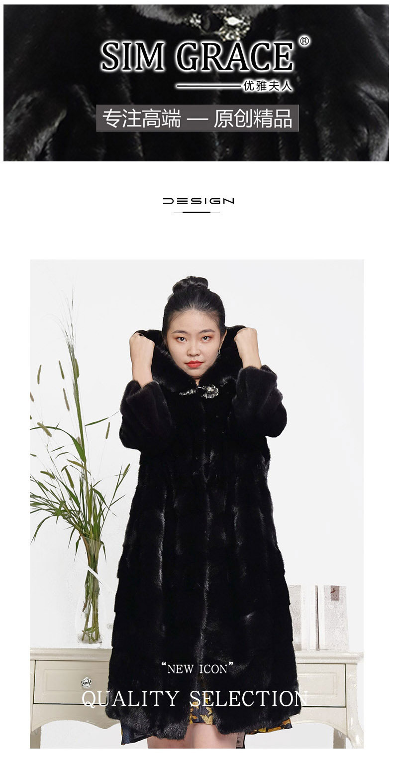 SIM GRACE 优雅夫人 女款轻奢横排设计时尚 大气外套连帽中长款整貂保暖大衣