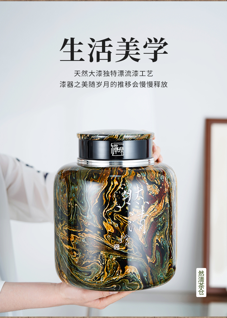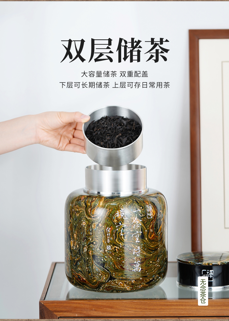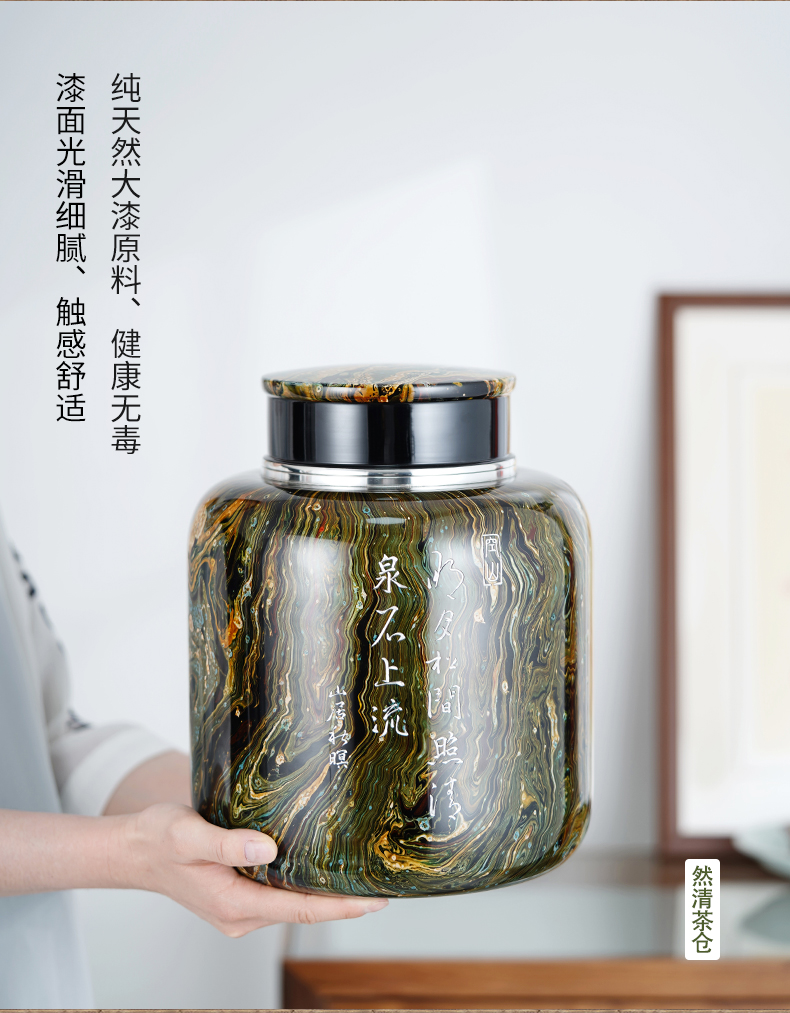 然清 无念茶仓(漂流漆反雕 双盖)斑锡龙