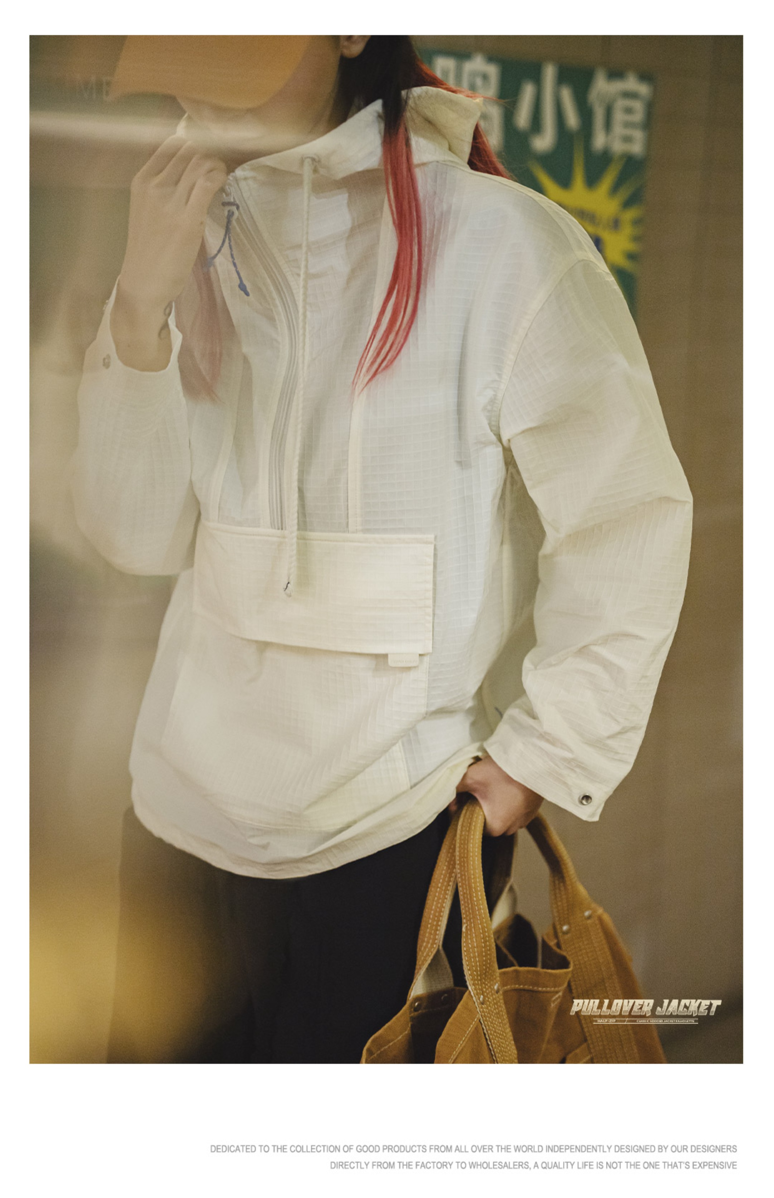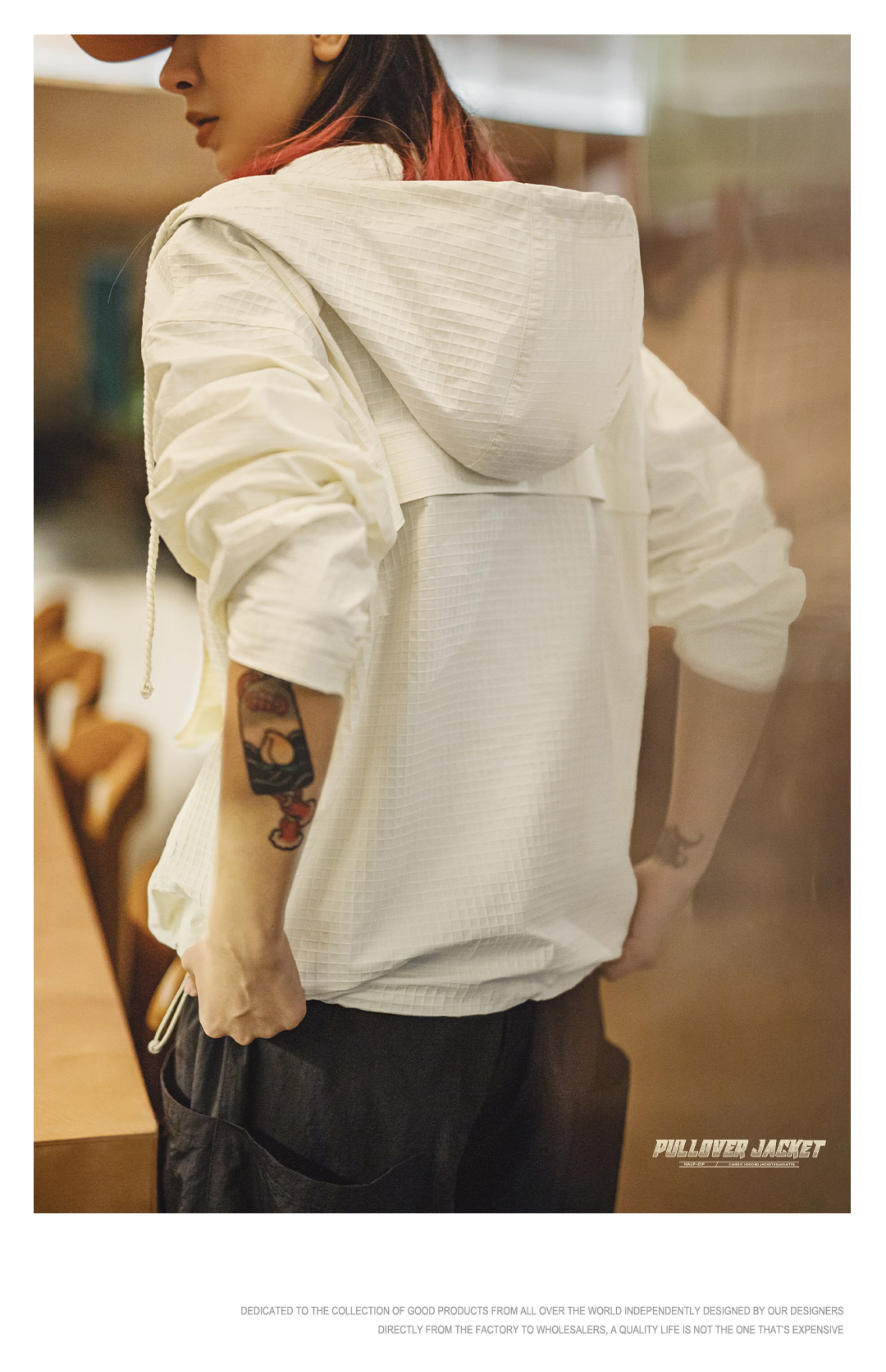 马登浅春系开心果白夹克半开襟套头运动卫衣提花华夫格春秋长袖女