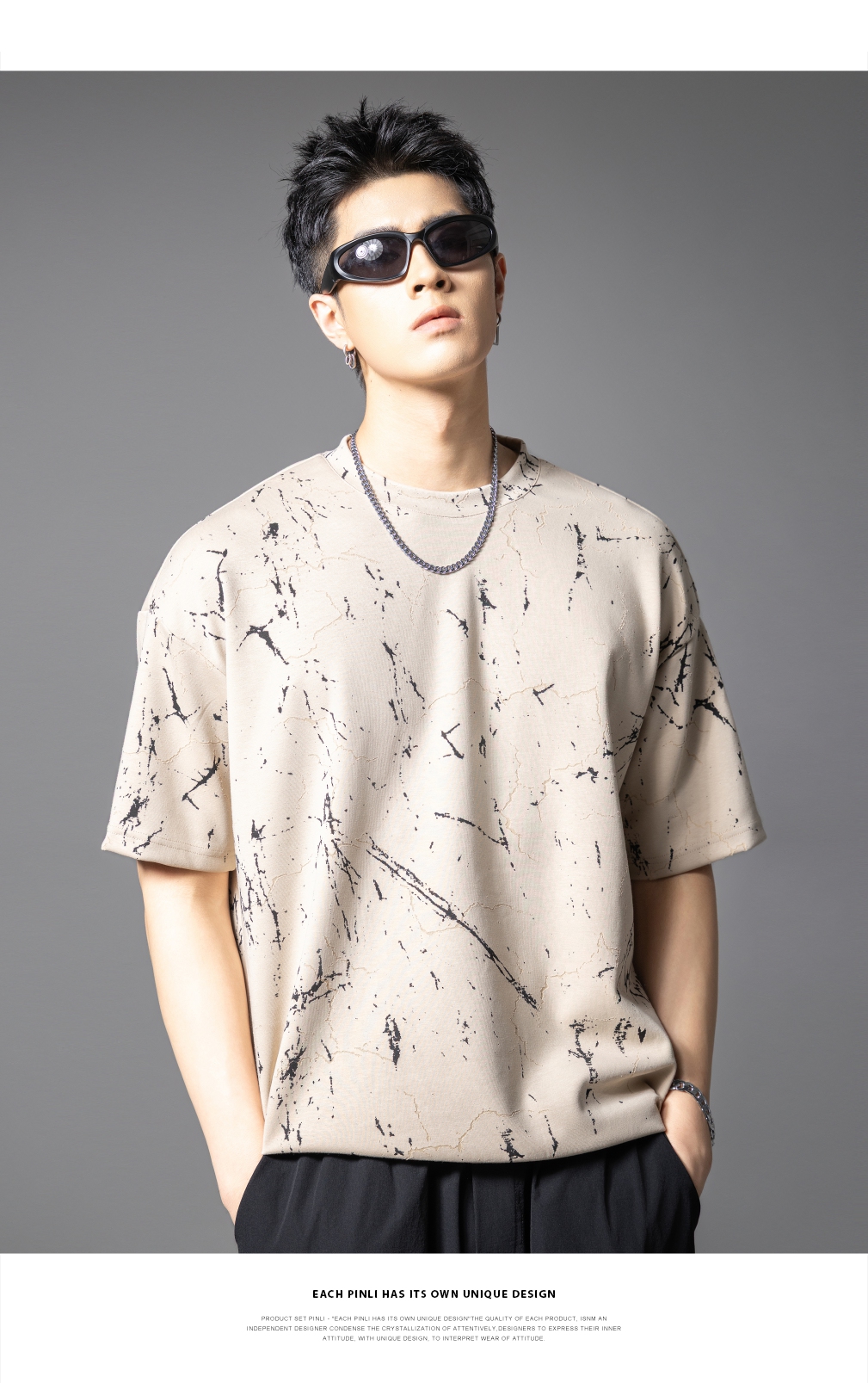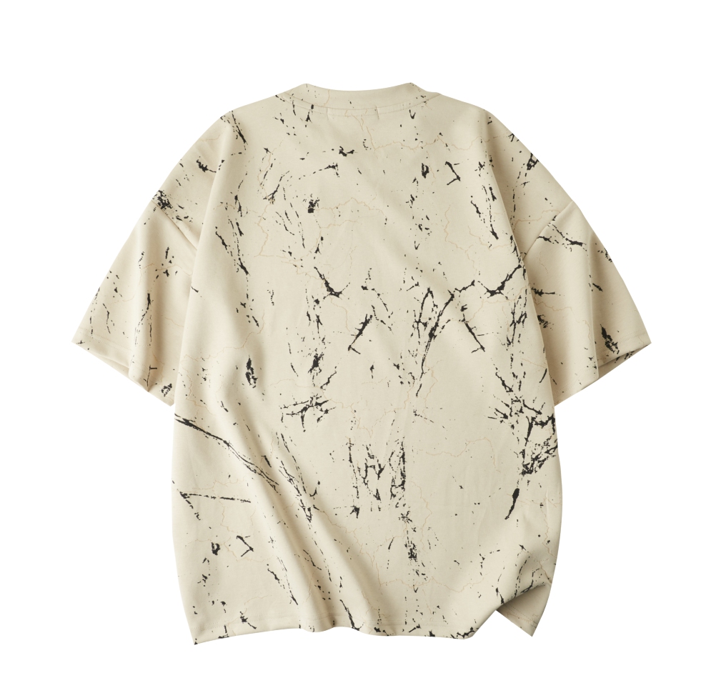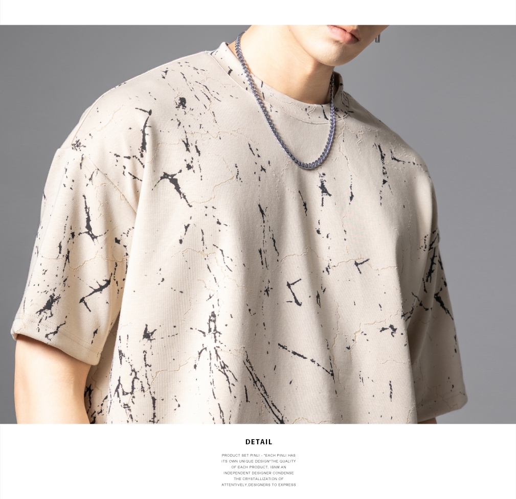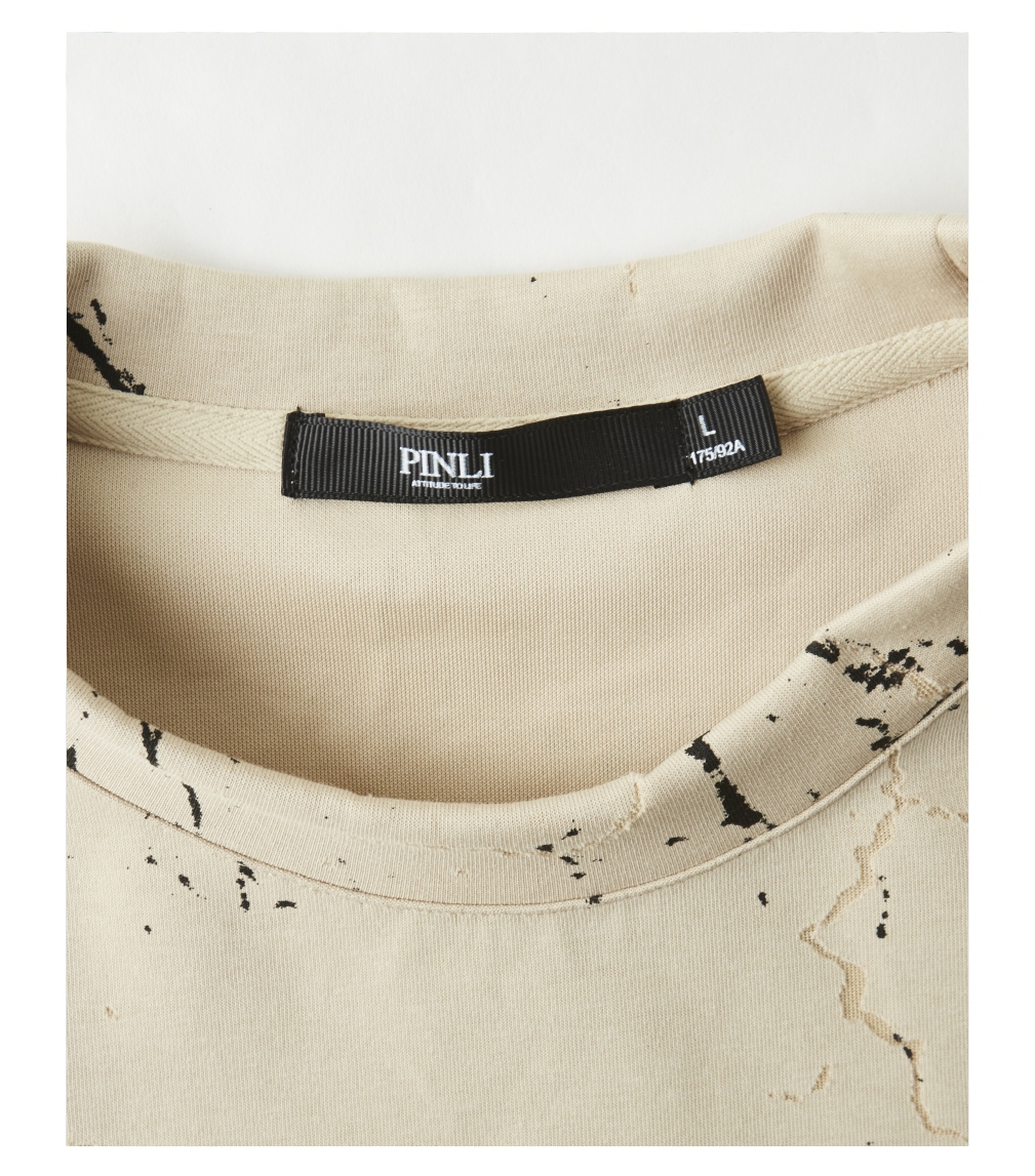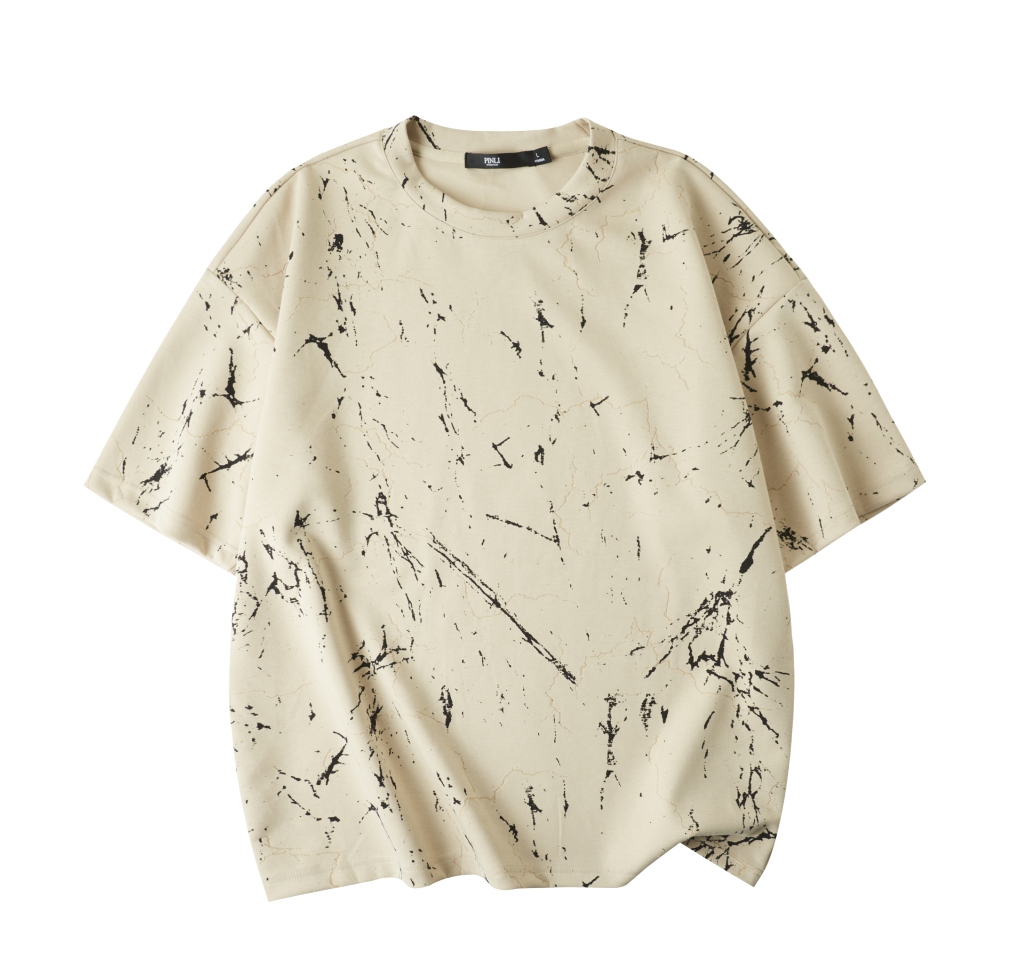PINLI品立2025夏季新款宽松短袖T恤裂纹肌理烧花扎染印花男士上衣B252111065