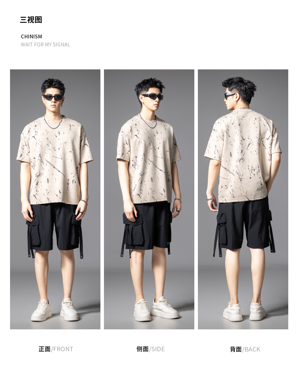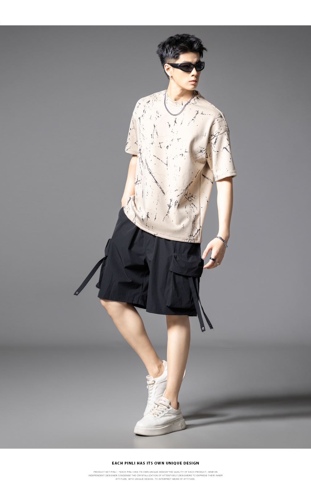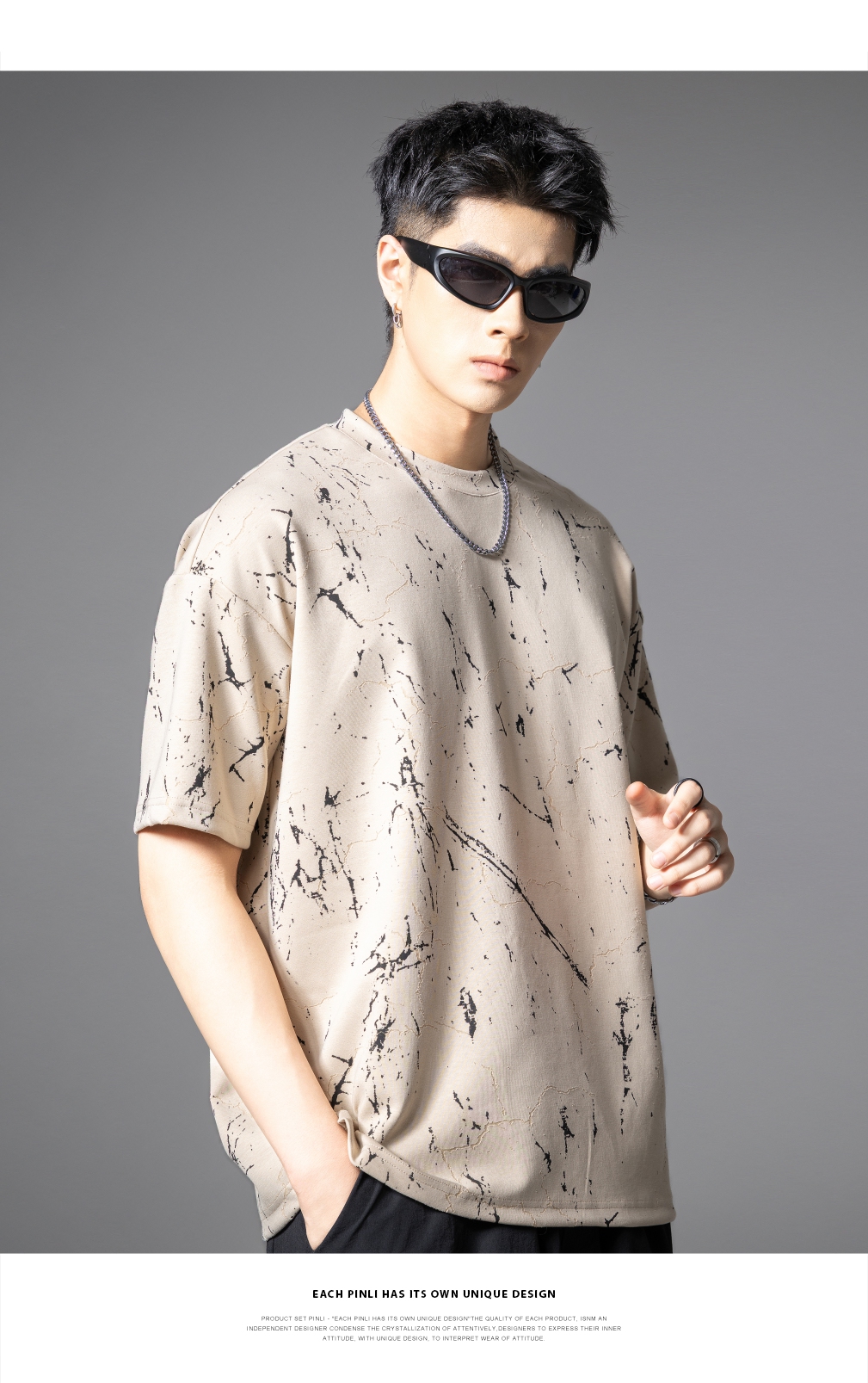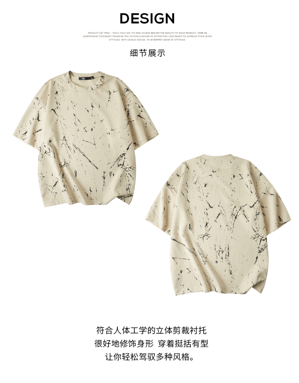 PINLI品立2025夏季新款宽松短袖T恤裂纹肌理烧花扎染印花男士上衣B252111065