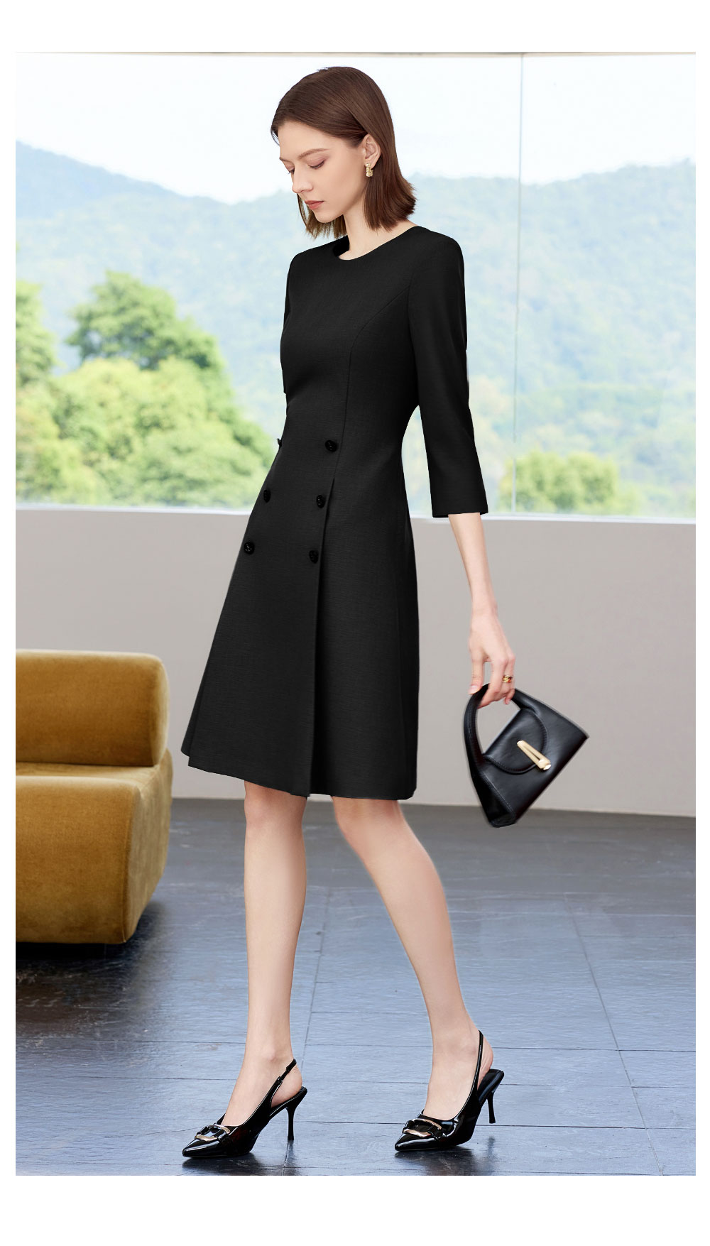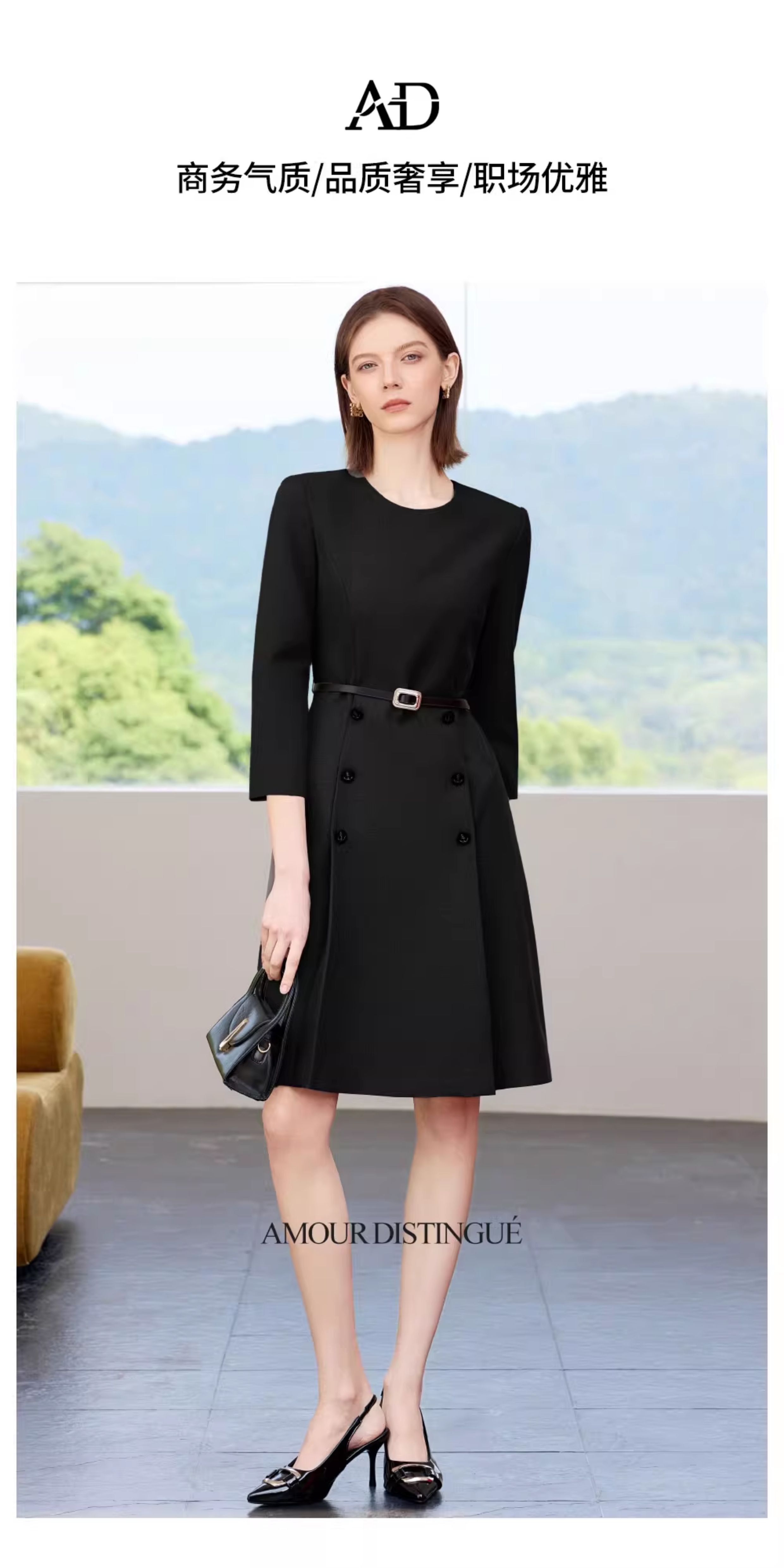 AD黑色西装连衣裙女2025新款高级感气质女神范职业装西服裙工作服