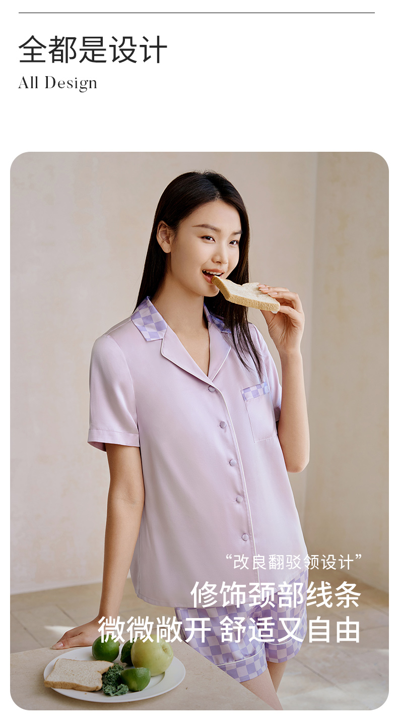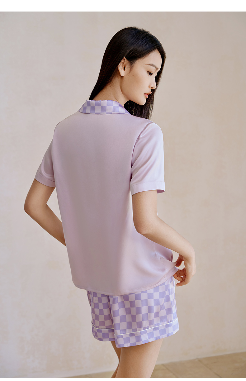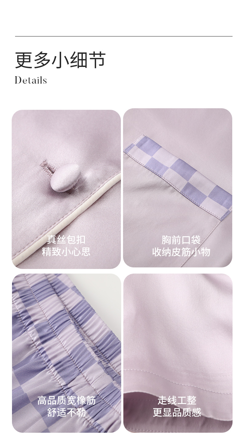 金三塔100%桑蚕丝女真丝睡衣简约棋盘格衣裤套长袖长裤短袖短裤家居服 YSFFB202/ YSFFB404
