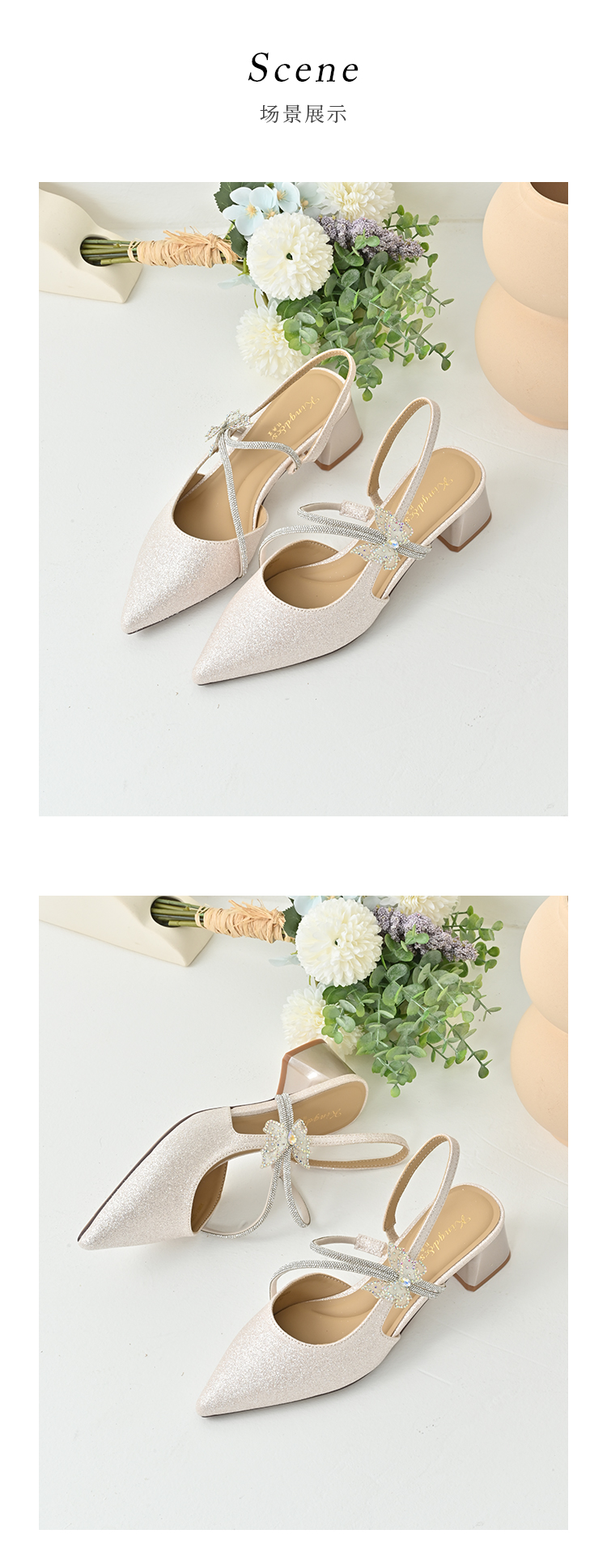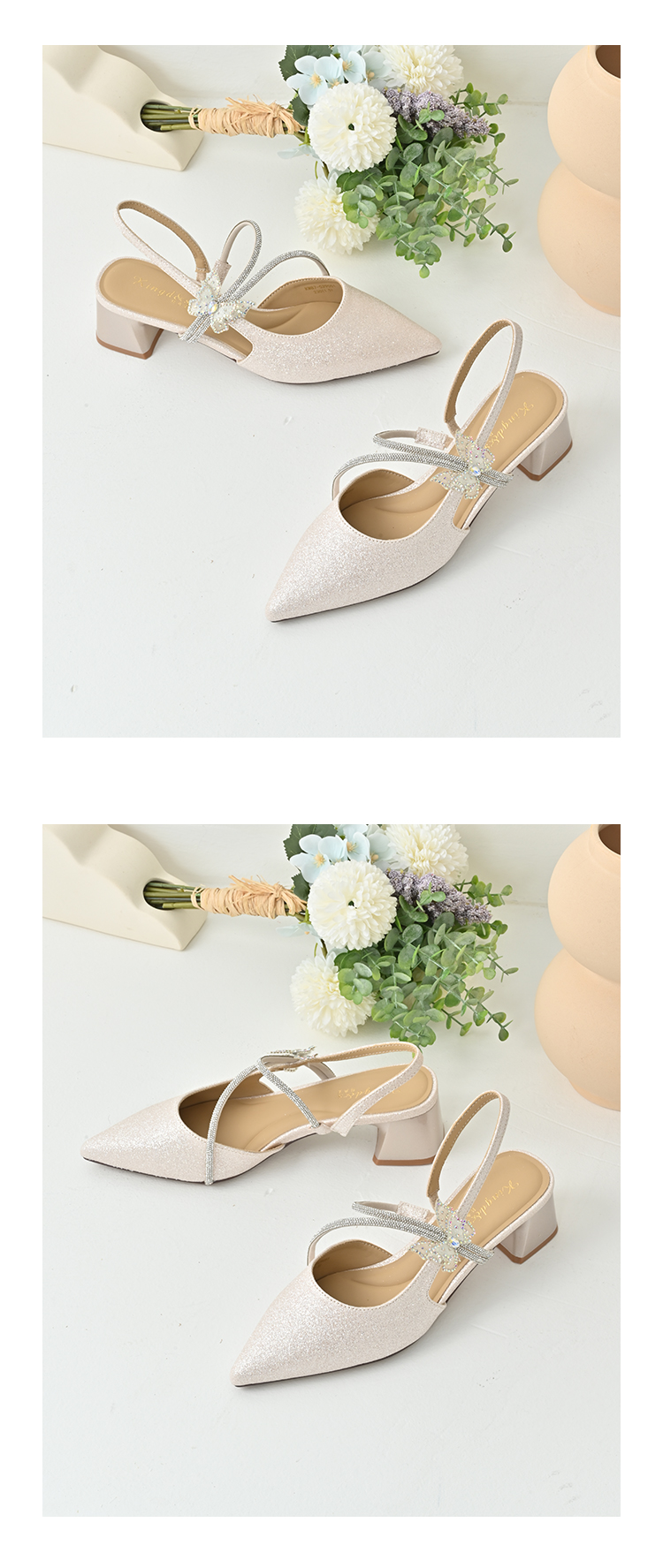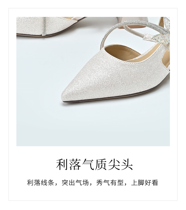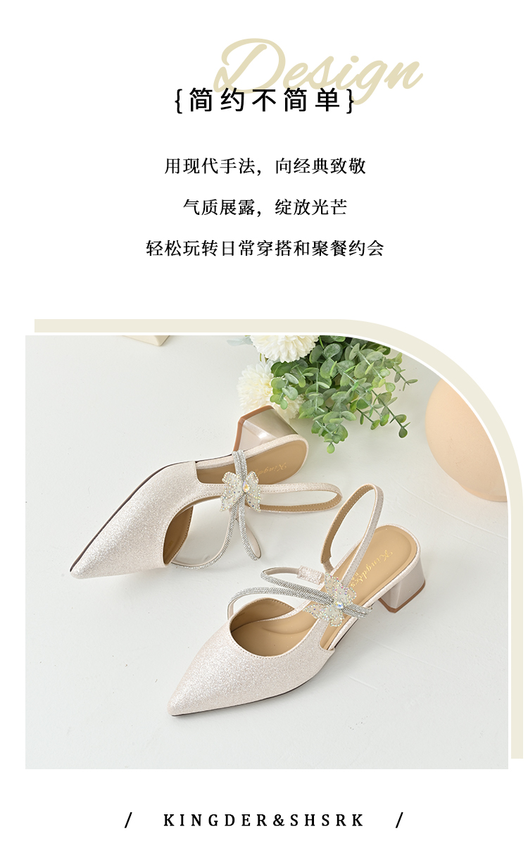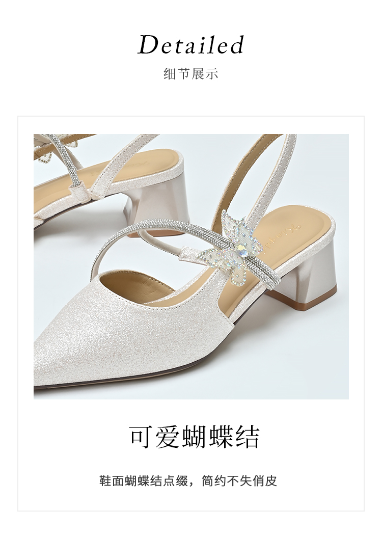 经典鲨2025年夏季款优雅尖头仙女风甜美蝴蝶装饰粗跟凉鞋女KW87-529051