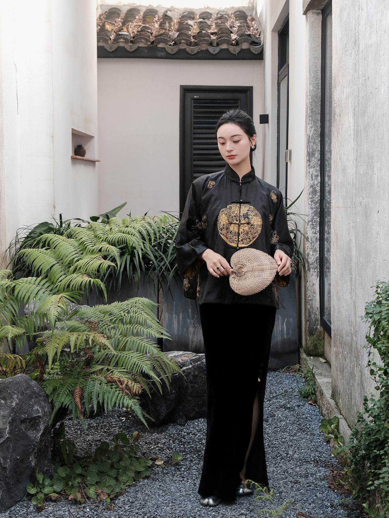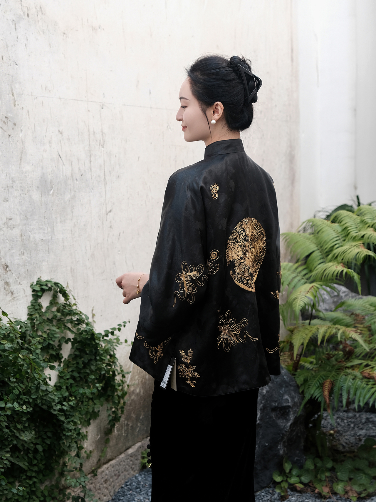 盛唐牡丹 |真丝香云纱手绣盘金绣外套