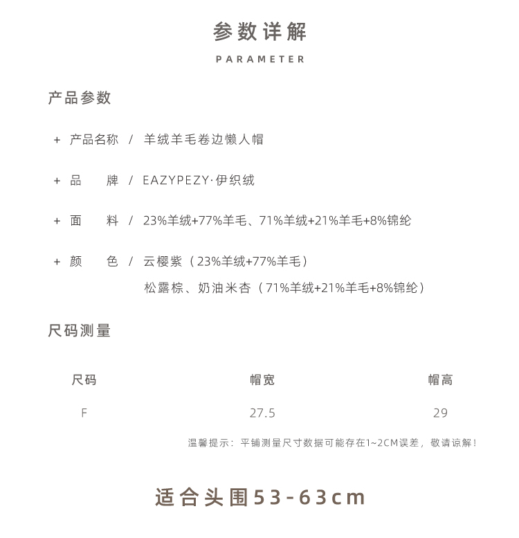 EAZYPEZY 棒针羊绒羊毛贝雷帽