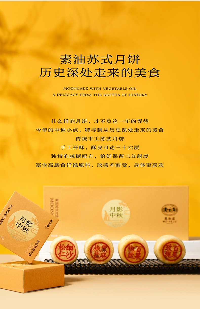 【美和居-国家非遗】苏式月饼礼盒月影中秋月饼酥皮印章低糖官方