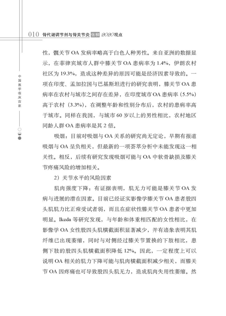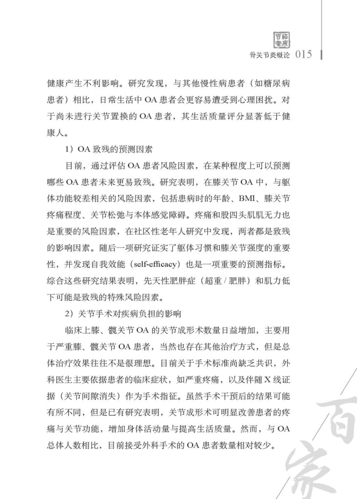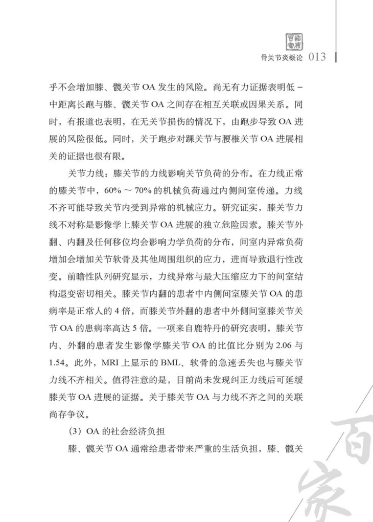 3. 骨关节炎的患病率逐年增加,发病因素多,经济负担重,综合有效的治疗方法尚有待进一步研究 / 005