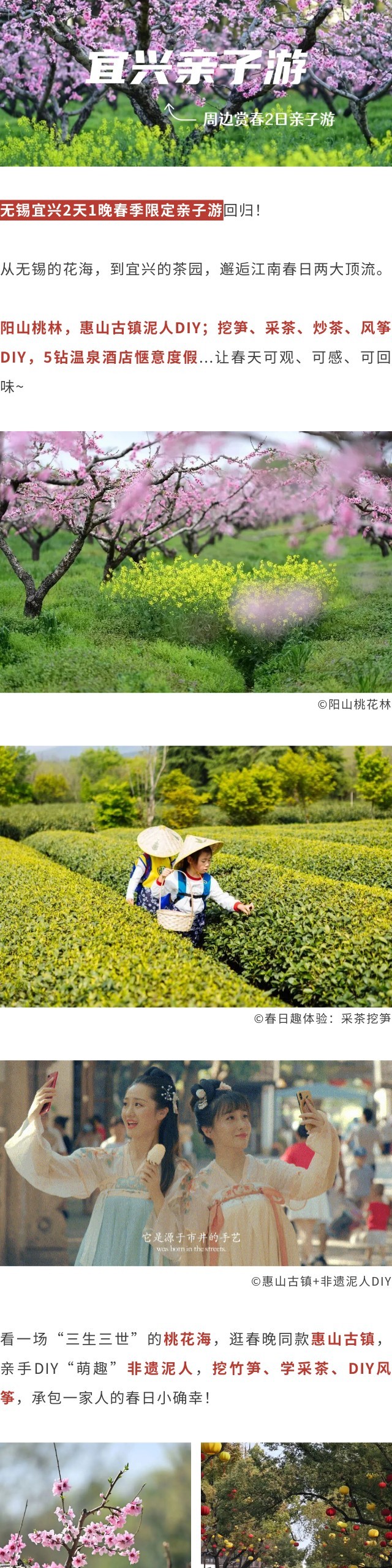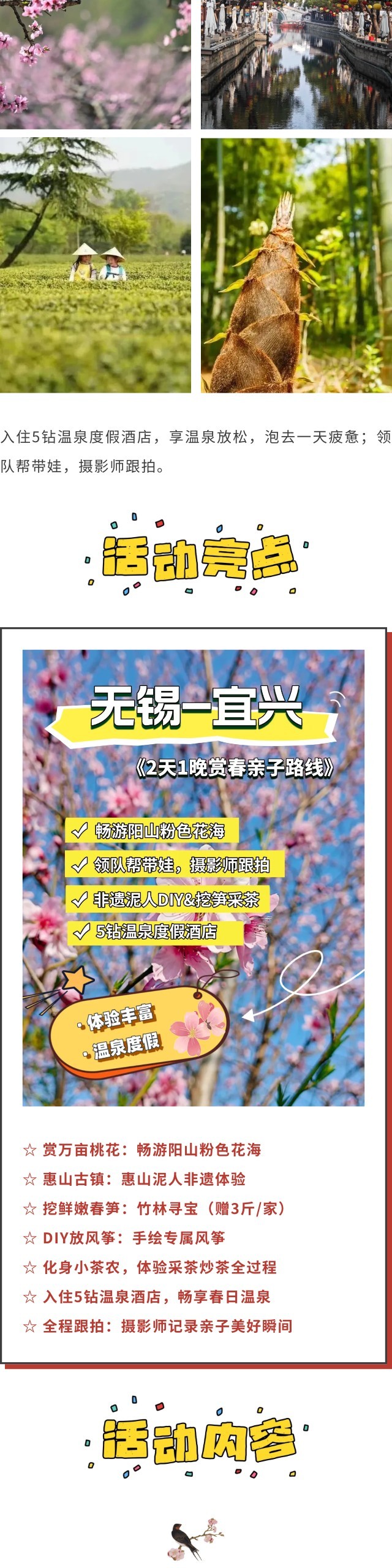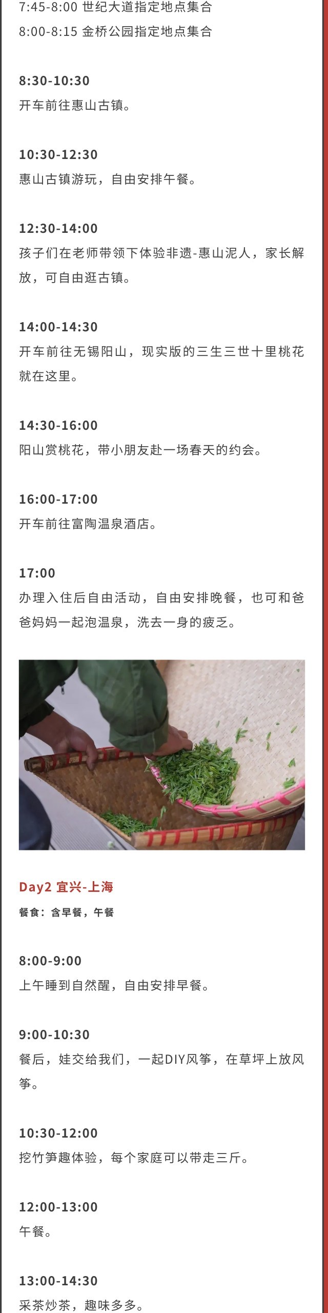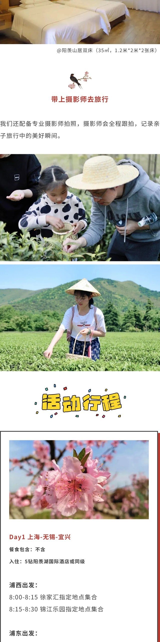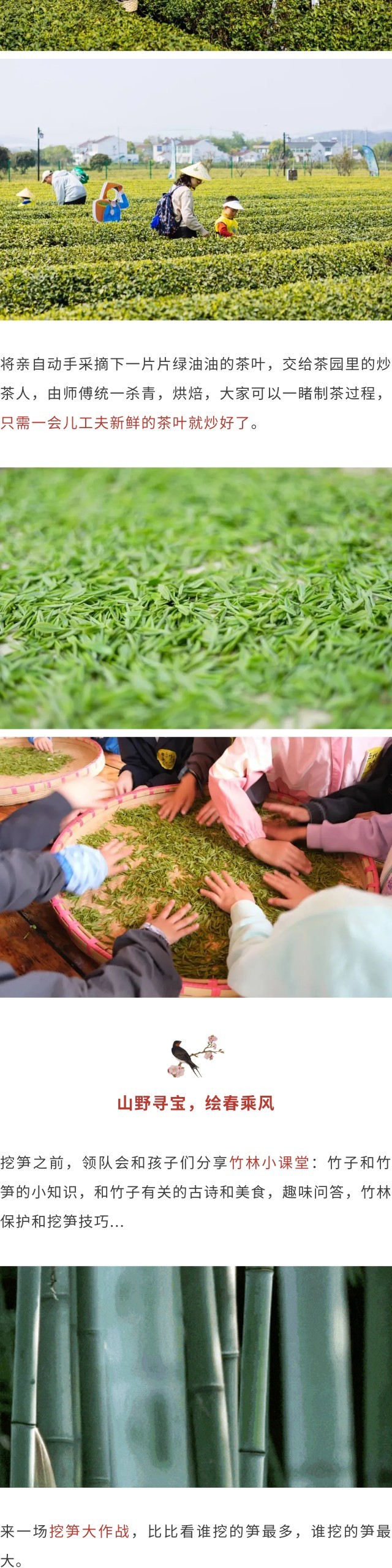 *花期受天气影响,以实际为准;采茶、挖笋均为季节限定性活动,受自然气候与具体时令产量影响,如遇不可抗力导致原活动无法开展,我们将对活动进行调整。
