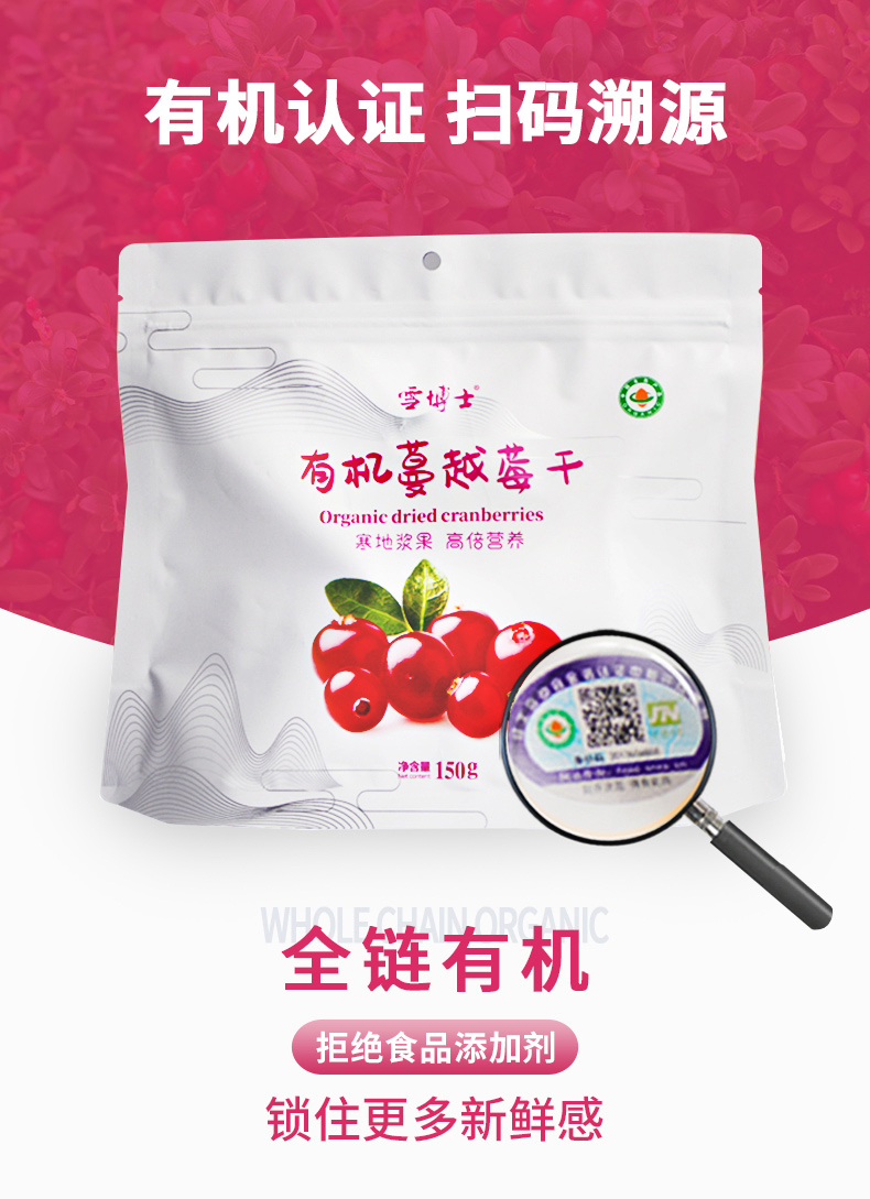 小兴安岭有机蔓越莓干 酸甜即食烘焙小包150g/袋