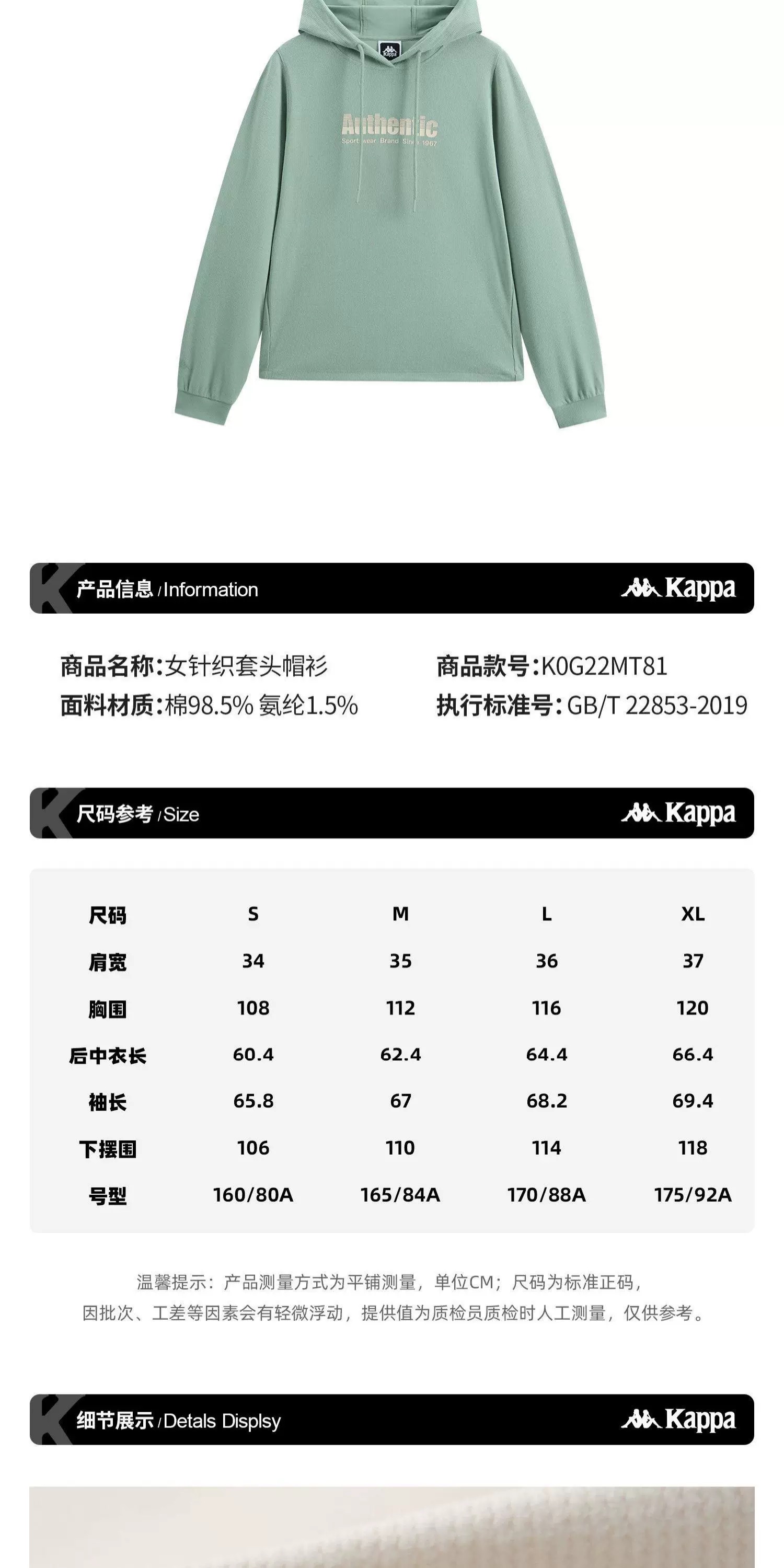 【春上新】【6折】6楼卡帕Kappa运动外套女装春季新款简约时尚休闲针织连帽卫衣套头衫K0G22MT81原价599现价359