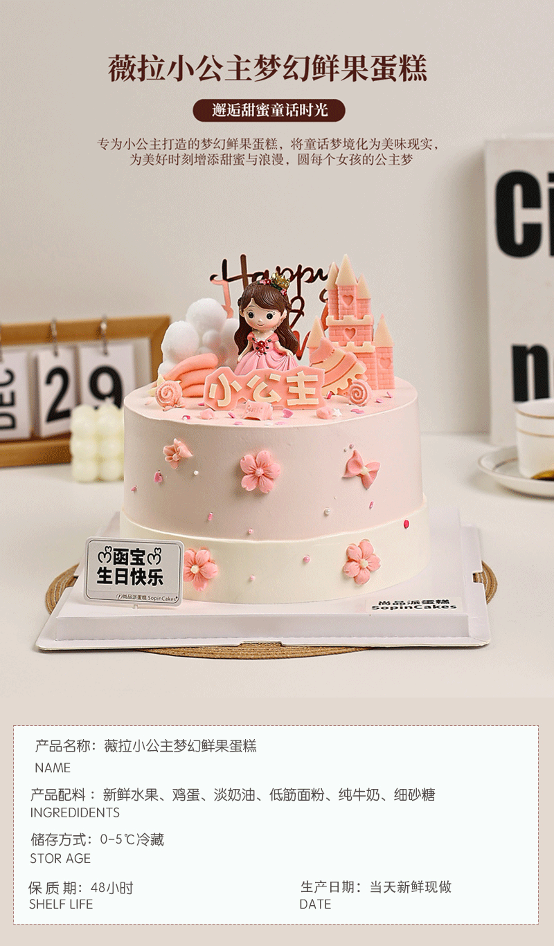 薇拉小公主梦幻鲜果蛋糕,邂逅甜蜜童话时光【惠州】