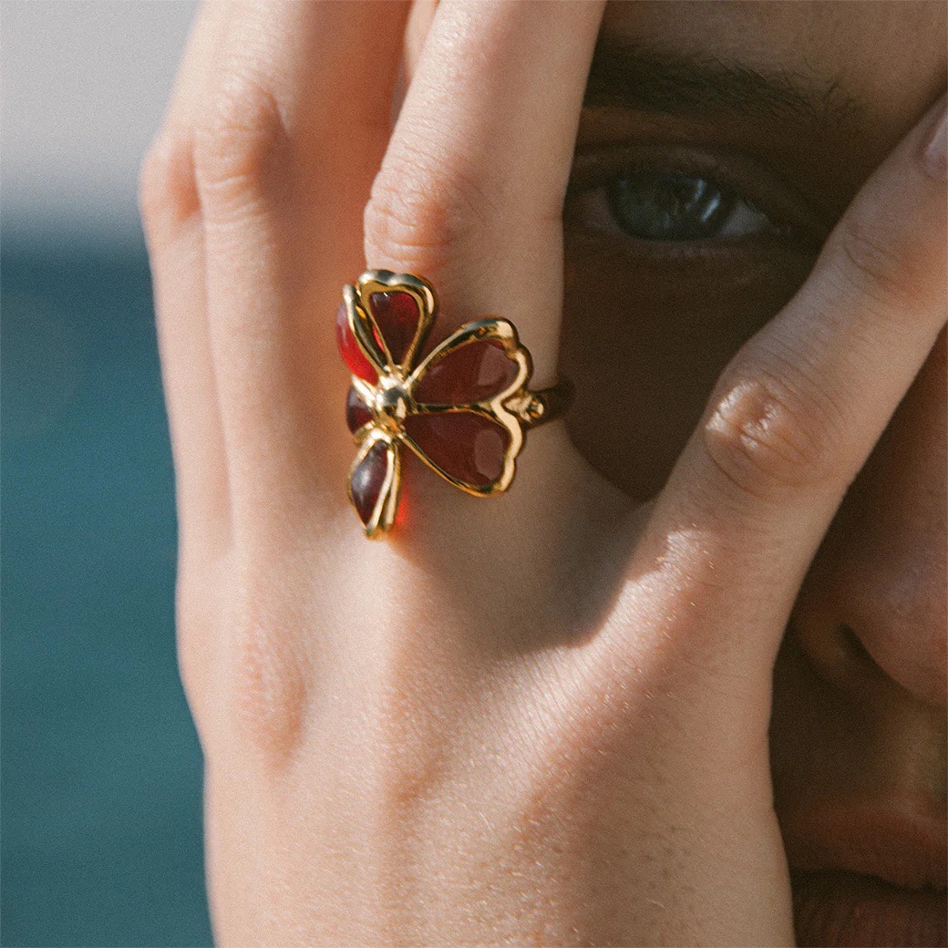 订购4周到|Goossens Paris-Petales-草莓红 花朵 戒指[法国设计师]