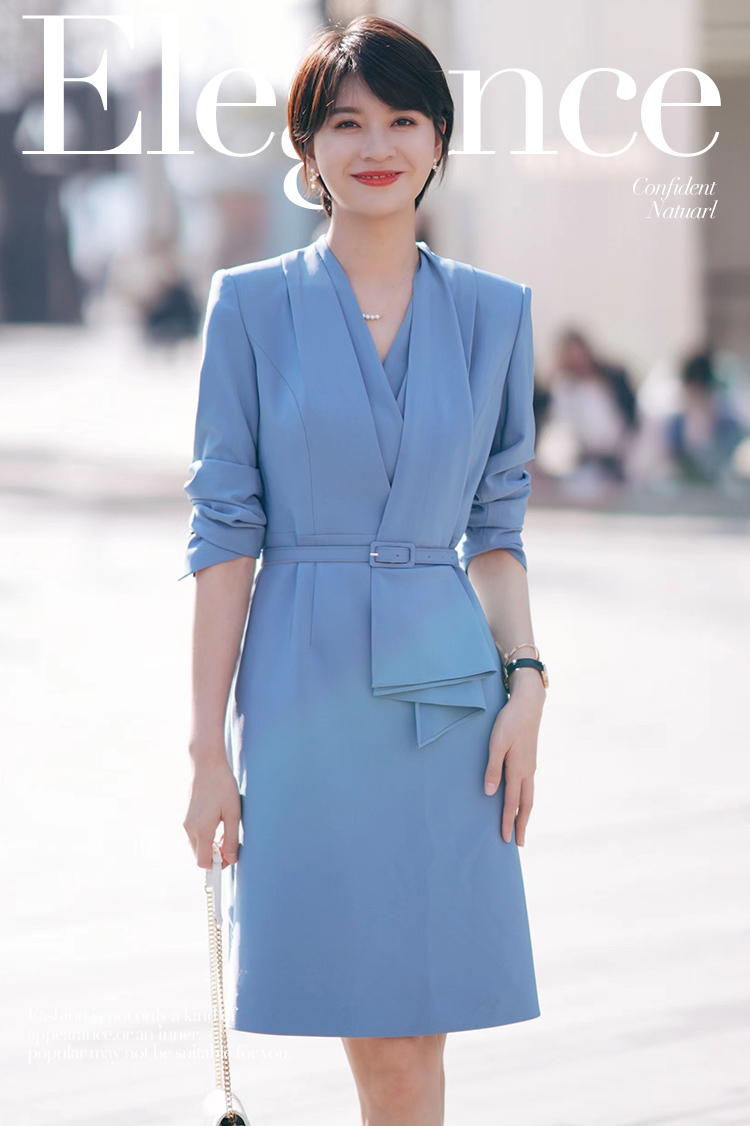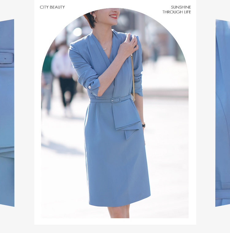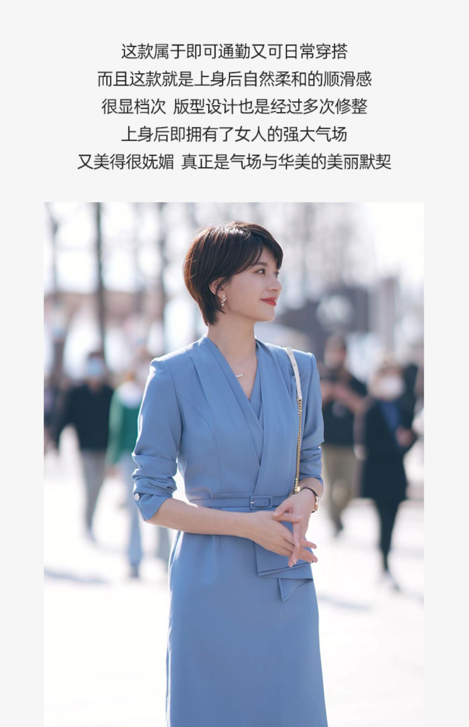 时尚简约轻奢气质大气连衣裙女中袖v领系带