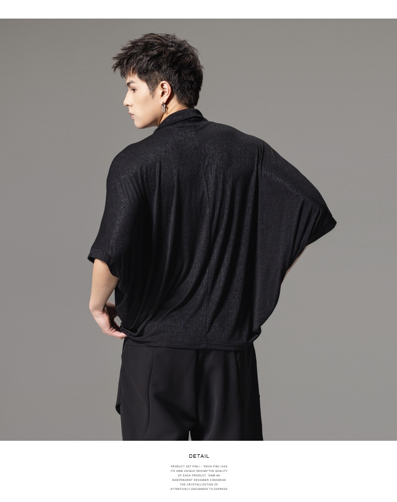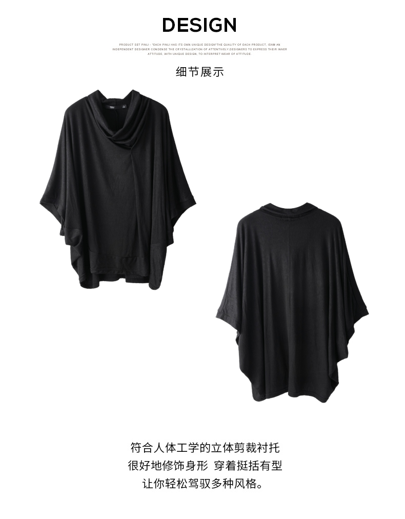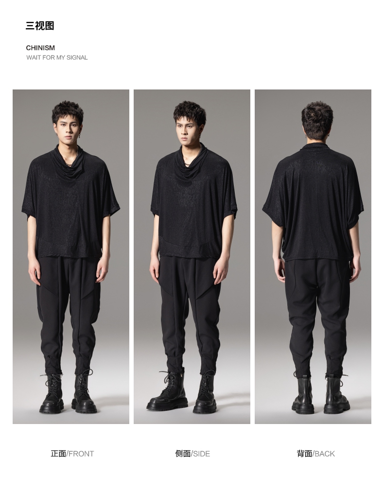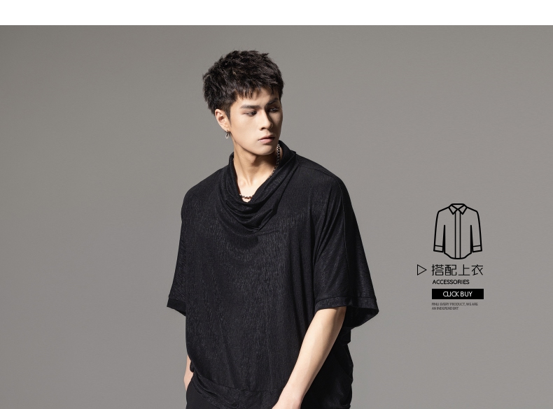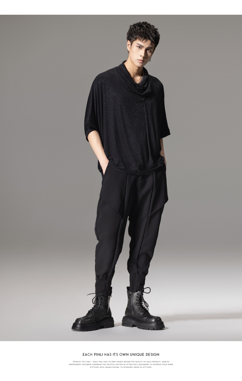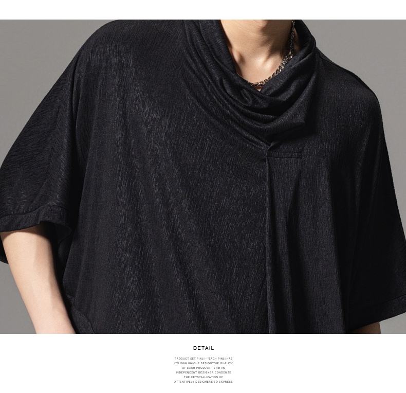 PINLI品立夏季新款堆堆领暗黑T恤潮流时尚宽松休闲短袖男上衣B242111005