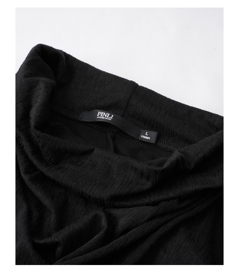 PINLI品立2026春季新款男纯色百搭松紧腰直筒休闲长裤GD262117034