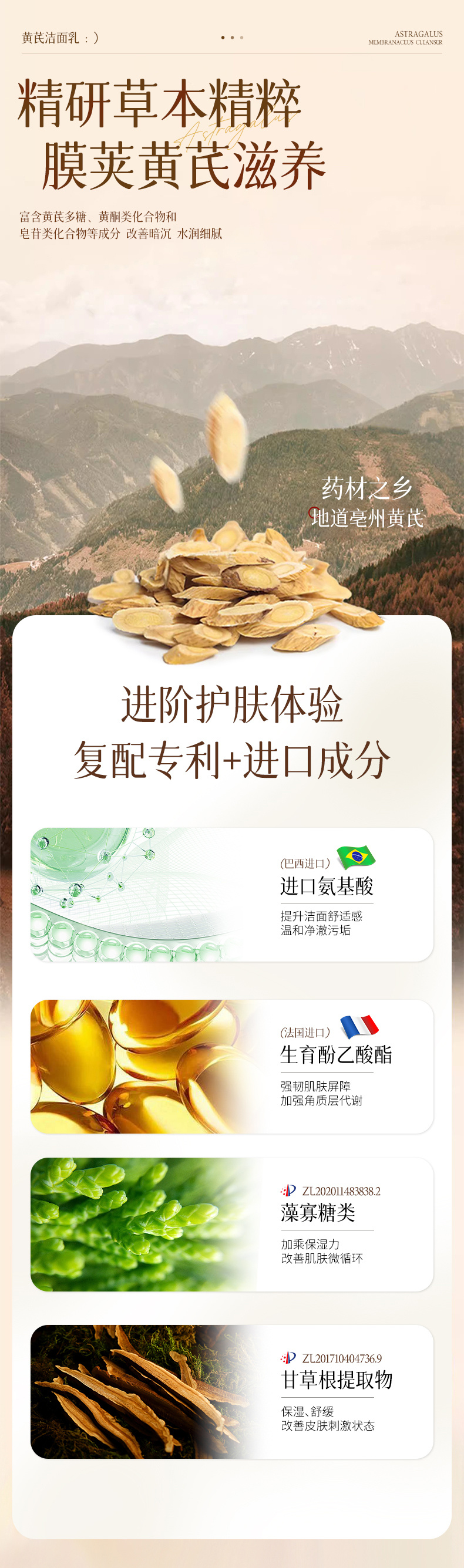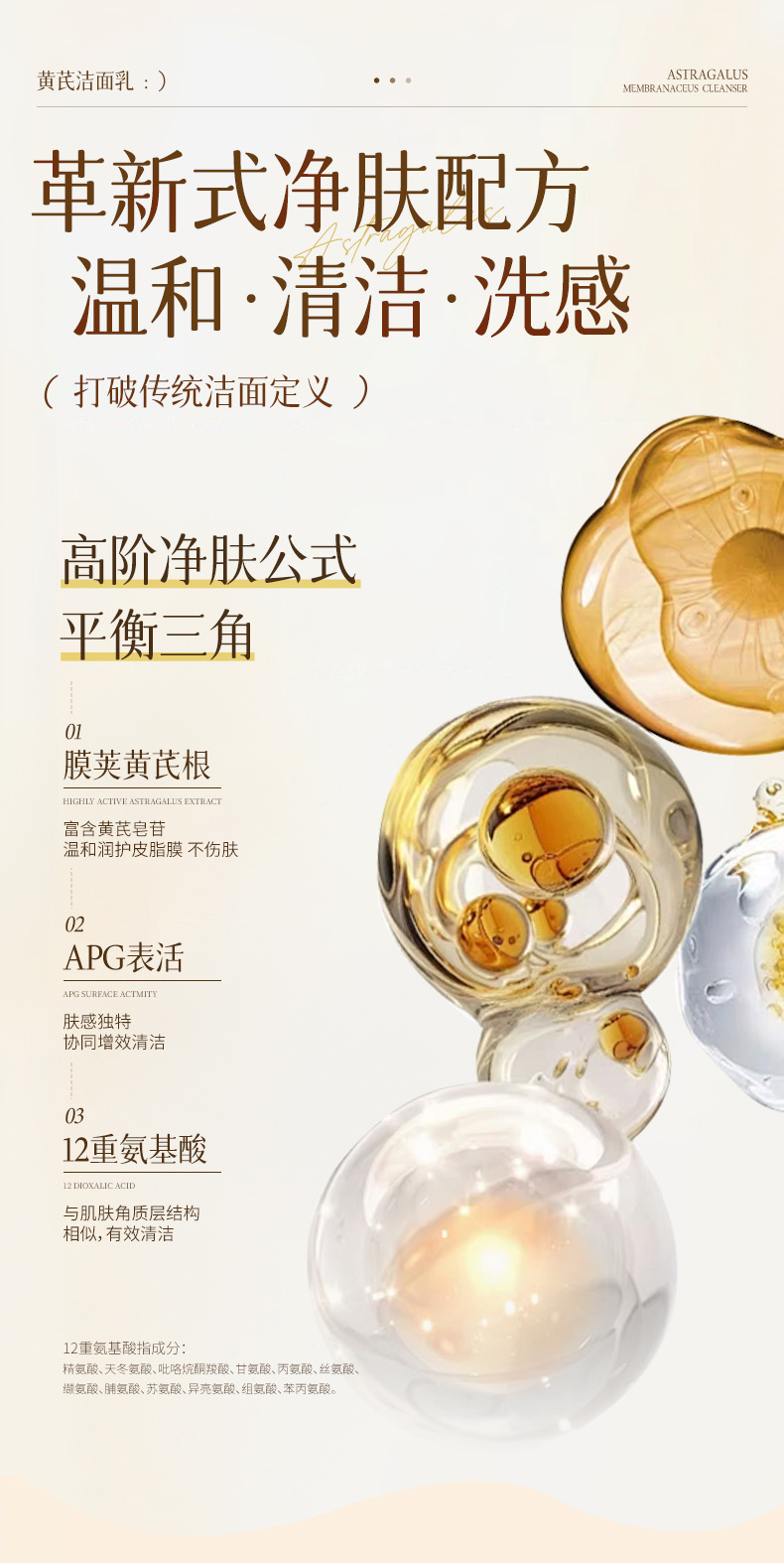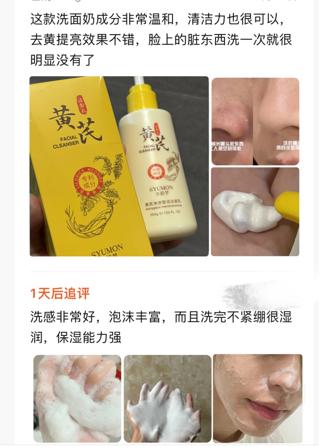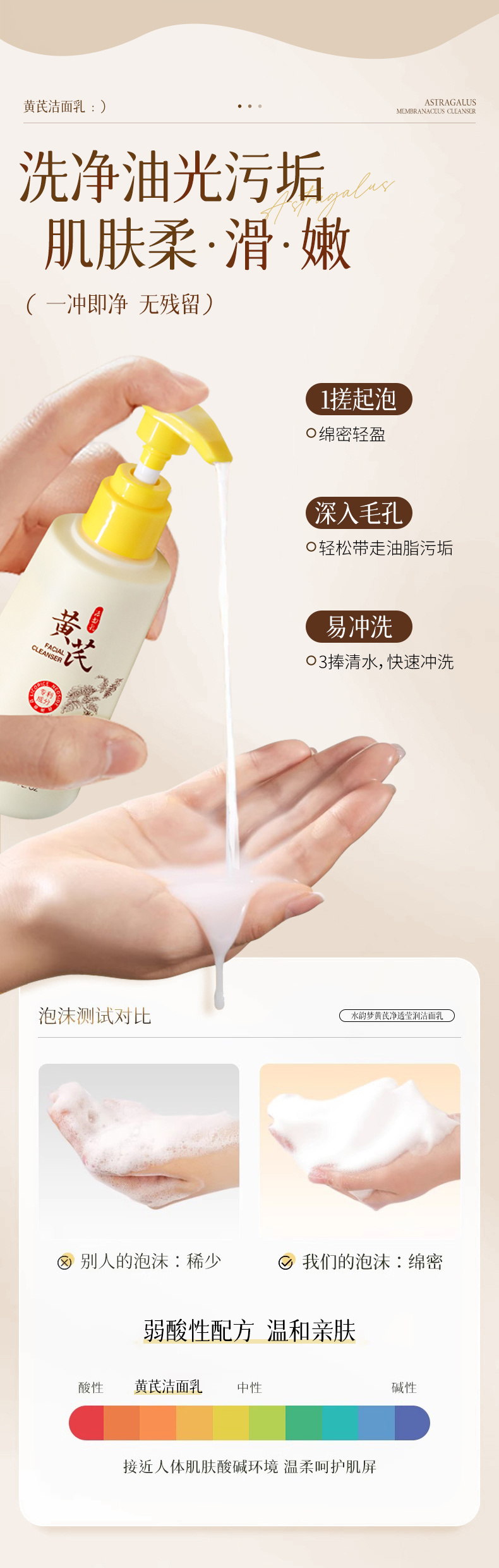 ✅天然黄芪萃取成分,不仅深层清洁肌肤,还能保湿透亮,给肌肤带来滋养。