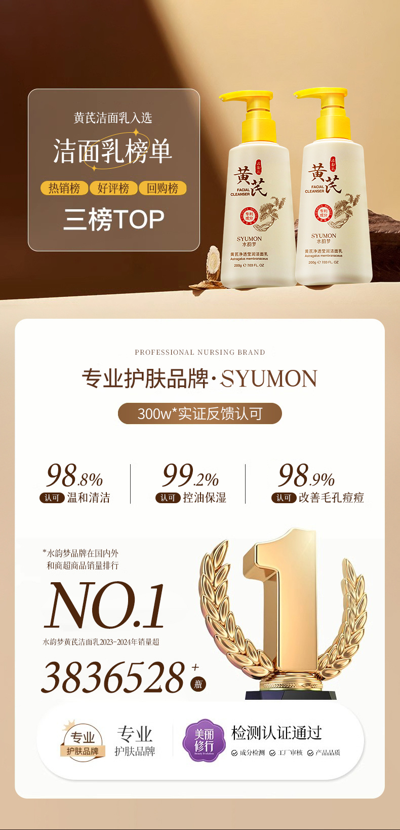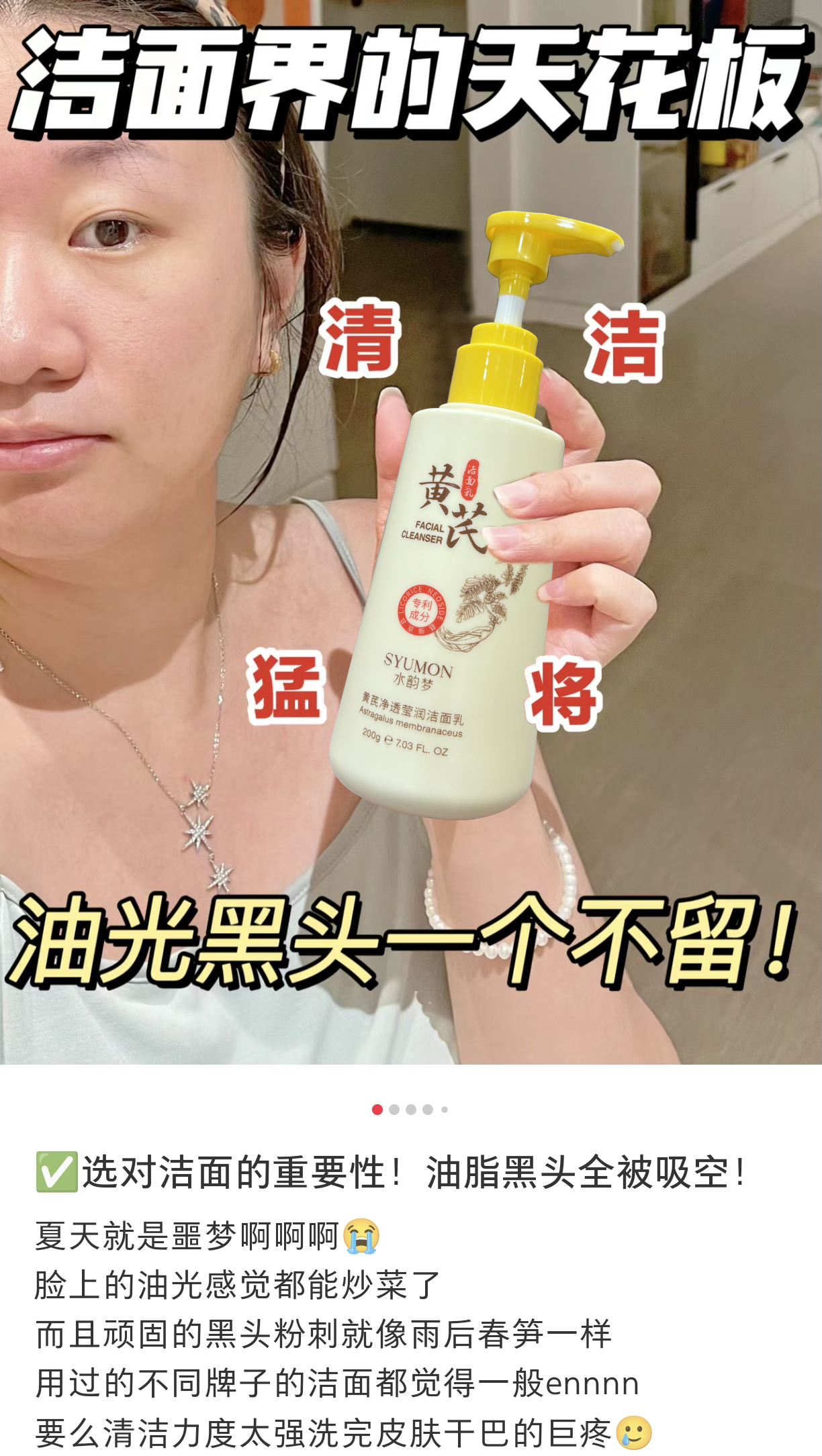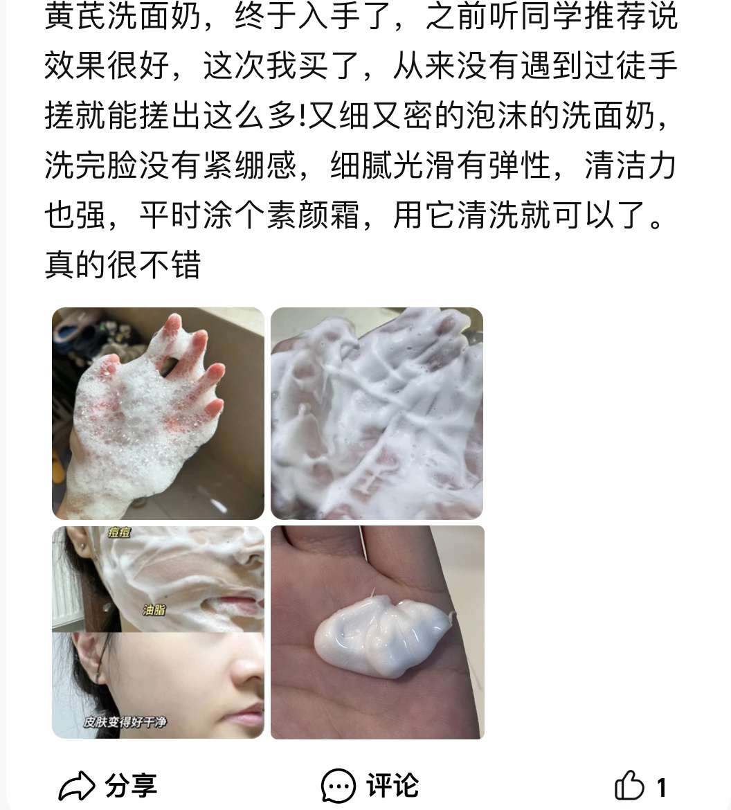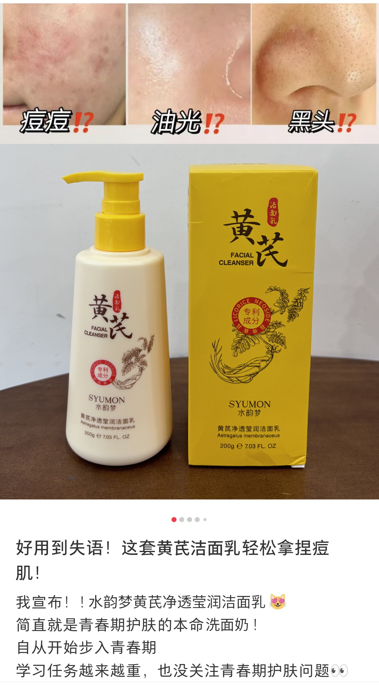 ✅天然黄芪萃取成分,不仅深层清洁肌肤,还能保湿透亮,给肌肤带来滋养。