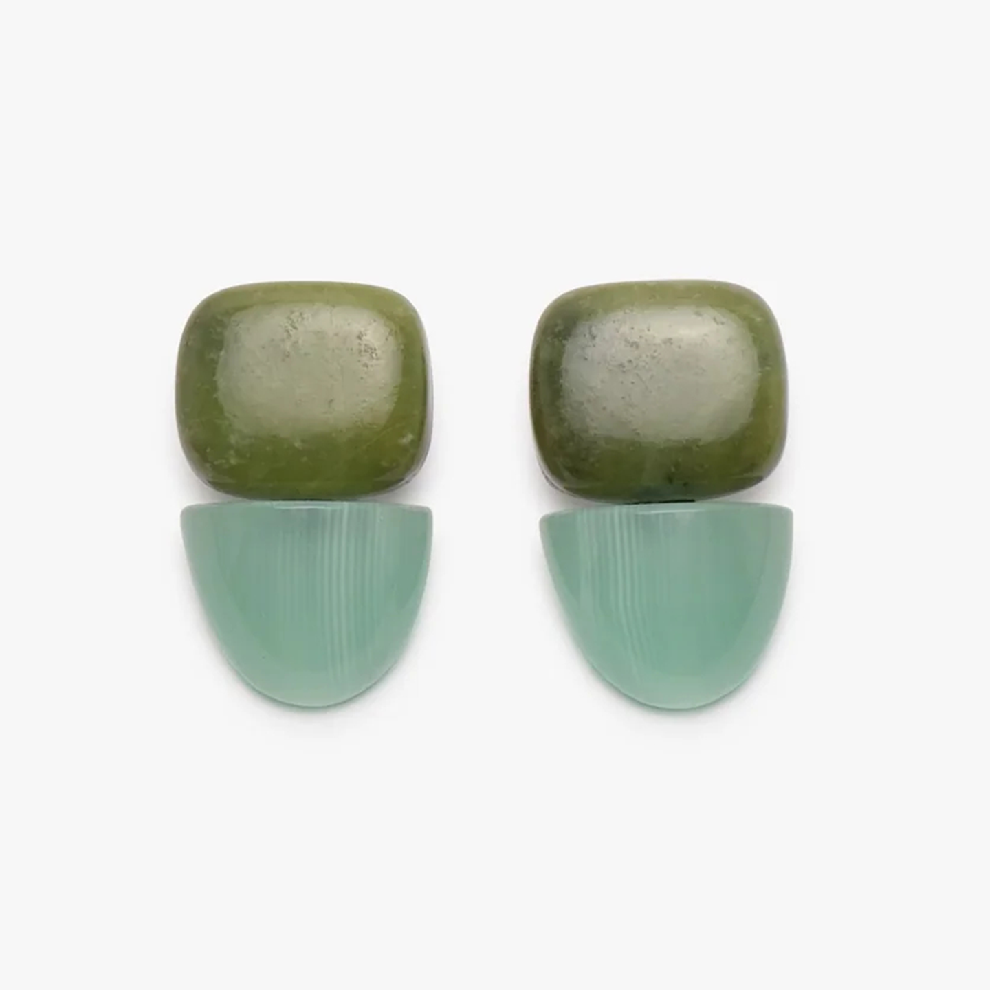 订购8周到|MONIES-OOAK-蛇纹石 玉髓 紫红宝石 珠宝级合金镀银 耳夹(无需耳洞)[丹麦设计师]