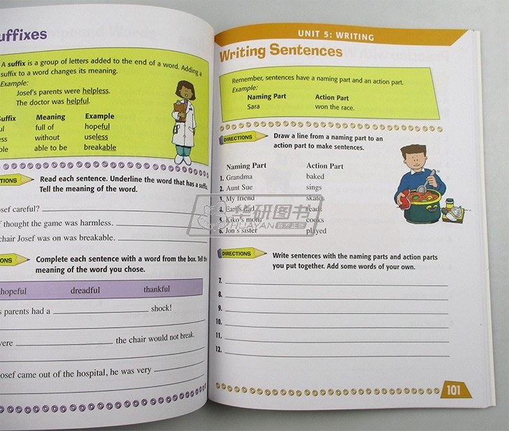 每一页都包含有趣的活动练习,以加强语法、标点符号、词汇和研究技能。每本书还包含一个部分,以改善写作和准备读者在标准化测试中取得优异成绩。