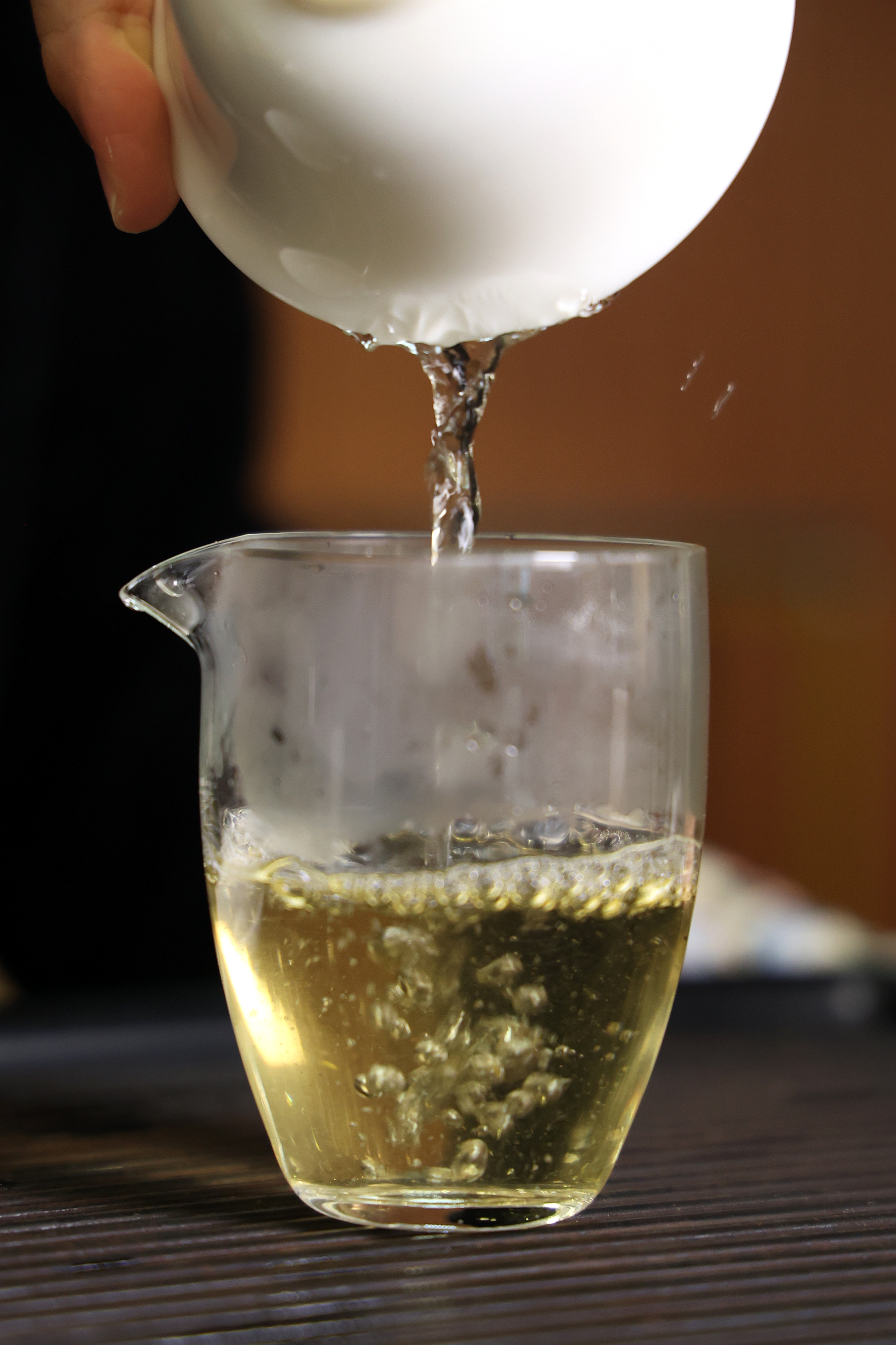 茶水比1:15,沸水冲泡,一入盖碗,花香甜韵即刻飘散开来,已如置身山野花田,沁人心脾。