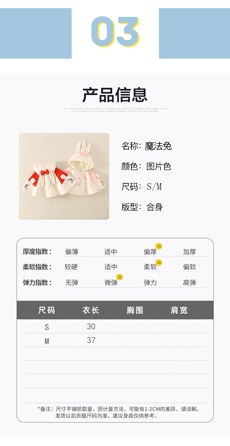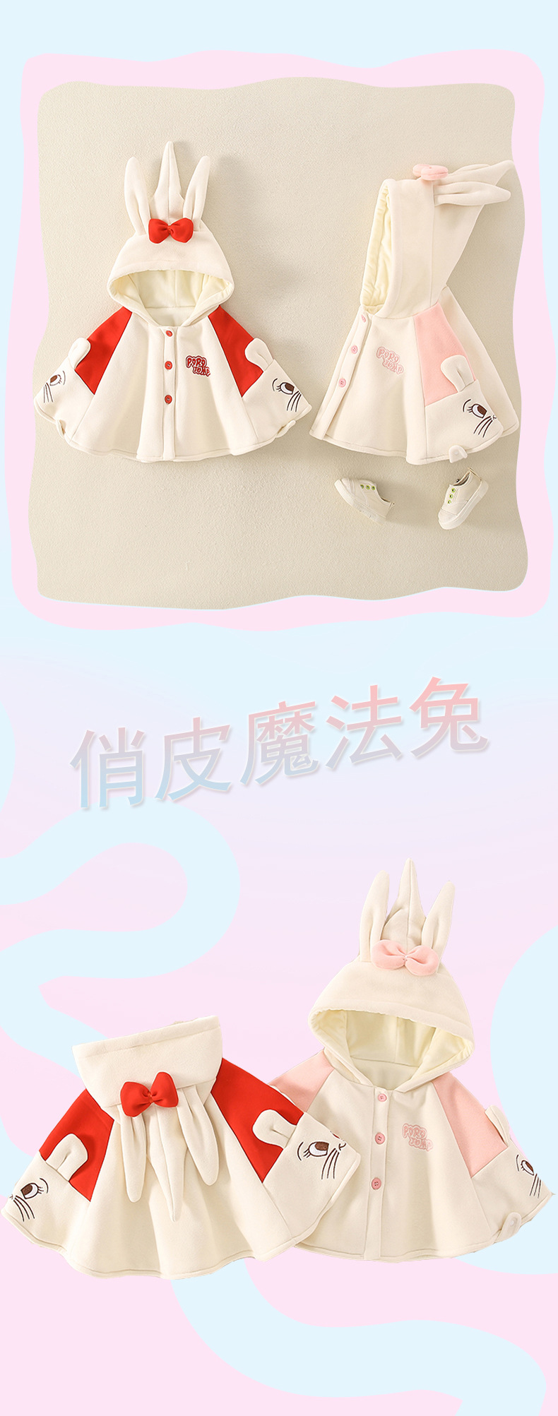 【俏皮魔法兔婴儿斗篷】秋冬季外出防风小外套加厚魔法兔可爱小童加绒宝宝披风