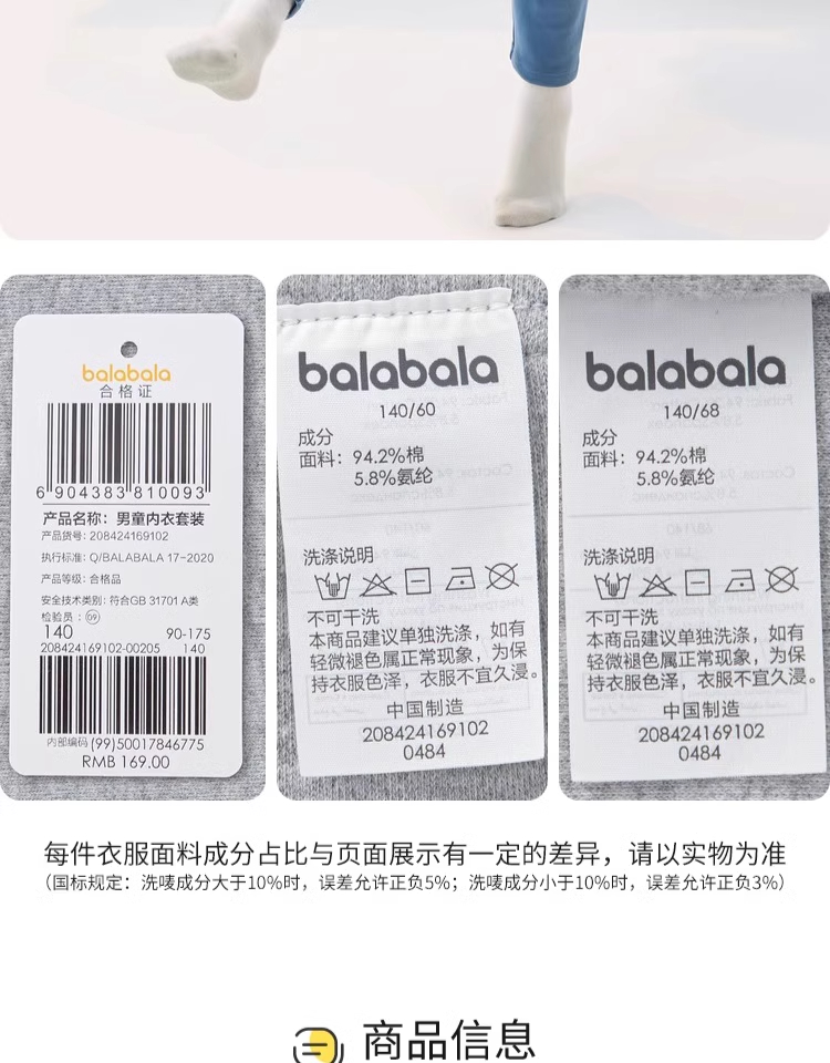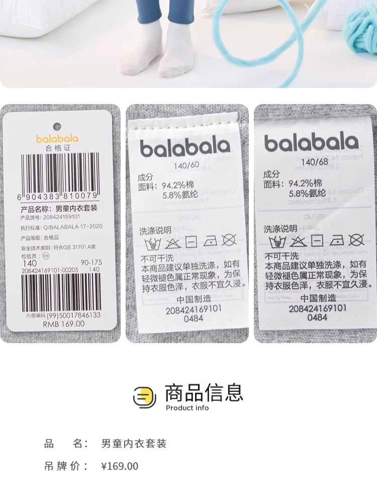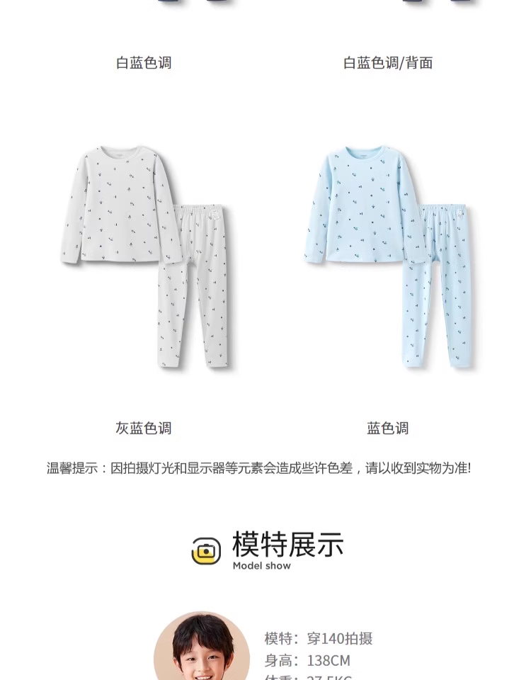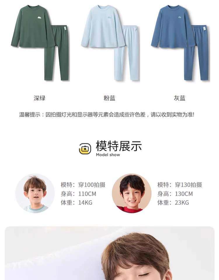 【超模君严选】巴拉巴拉男童秋衣秋裤套装秋冬加厚保暖内衣小童大童睡衣打底睡衣
