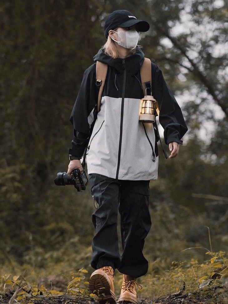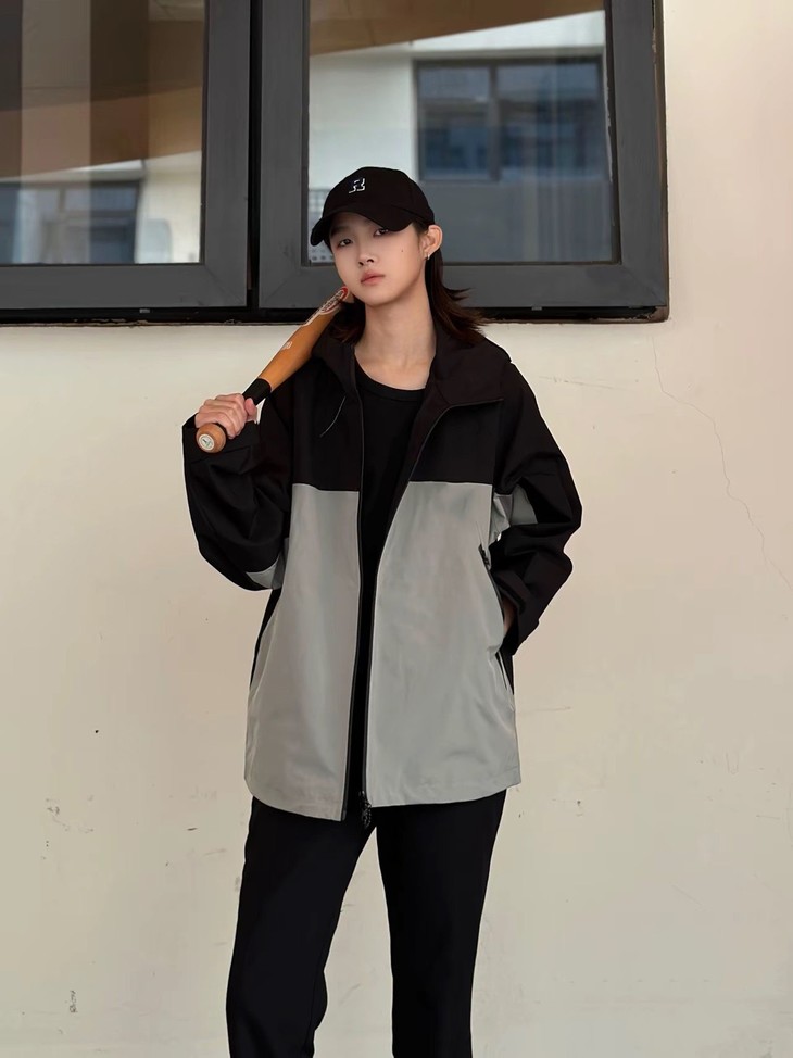 穿上这件黑拼灰冲锋衣,你就是街头最靓的仔!
