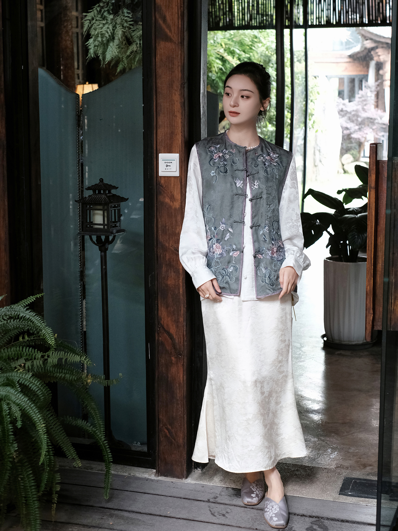 盛唐牡丹 | 时髦玉扣花香引蝶对襟女衬衫
