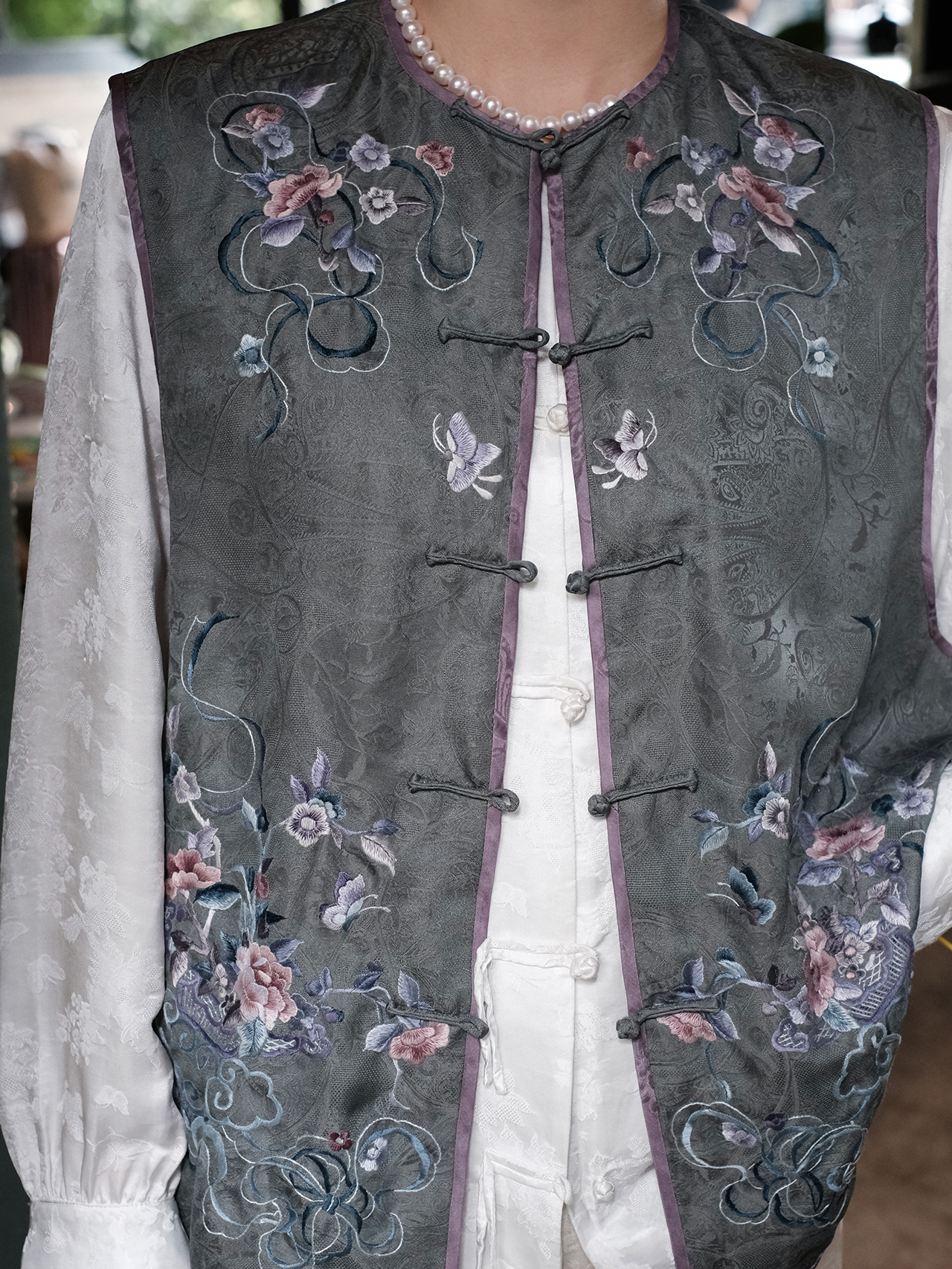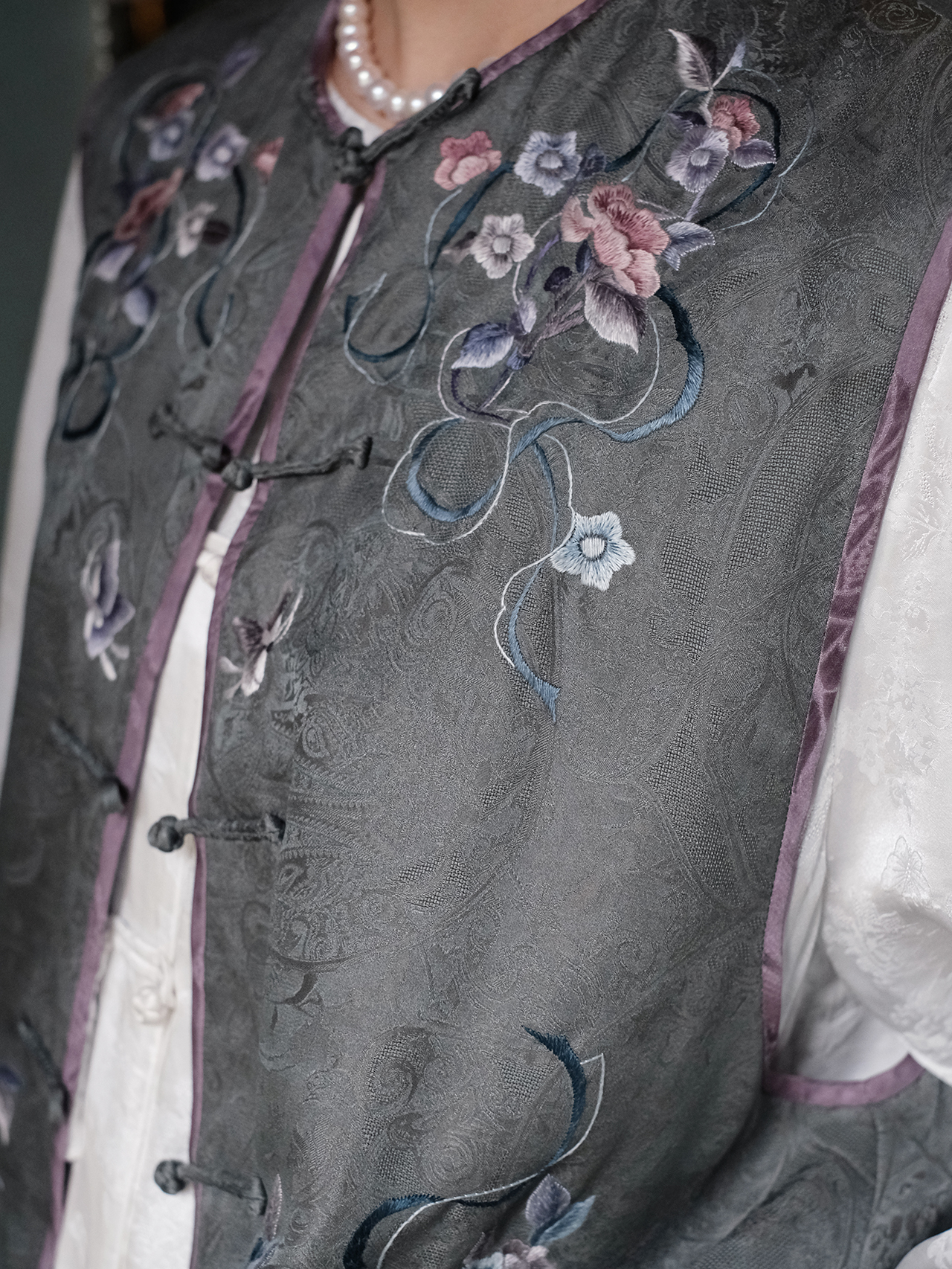 下架|盛唐牡丹盛奢系列| 限量款| 高货-手绣花开富贵对襟马甲-绿色(特殊商品不退不换)