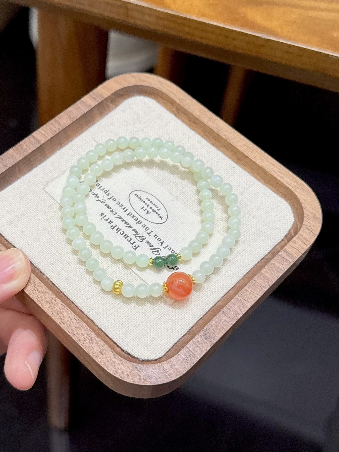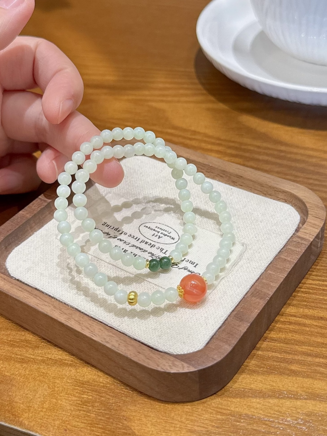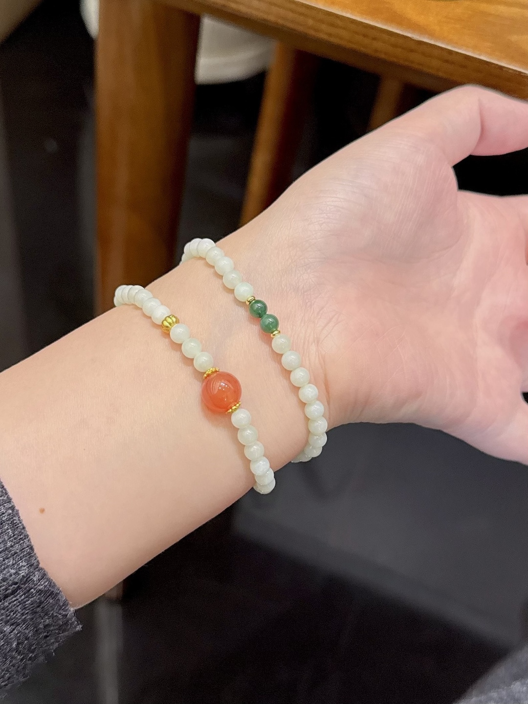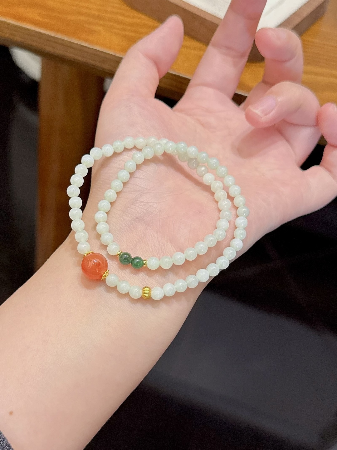 天然和田玉手串,尺寸约5mm左右,搭配碧玉,盐源玛瑙,绕手两圈