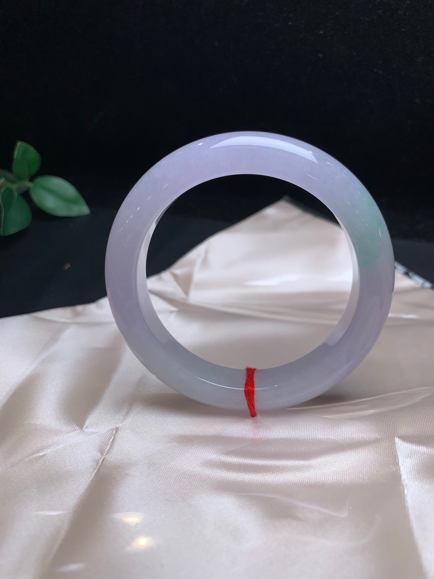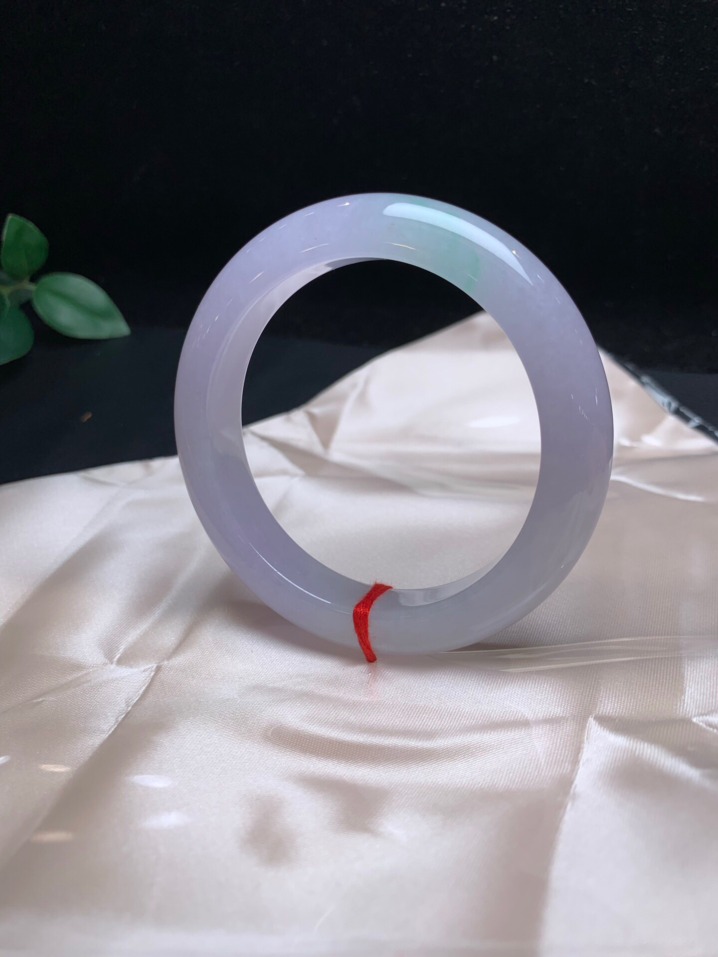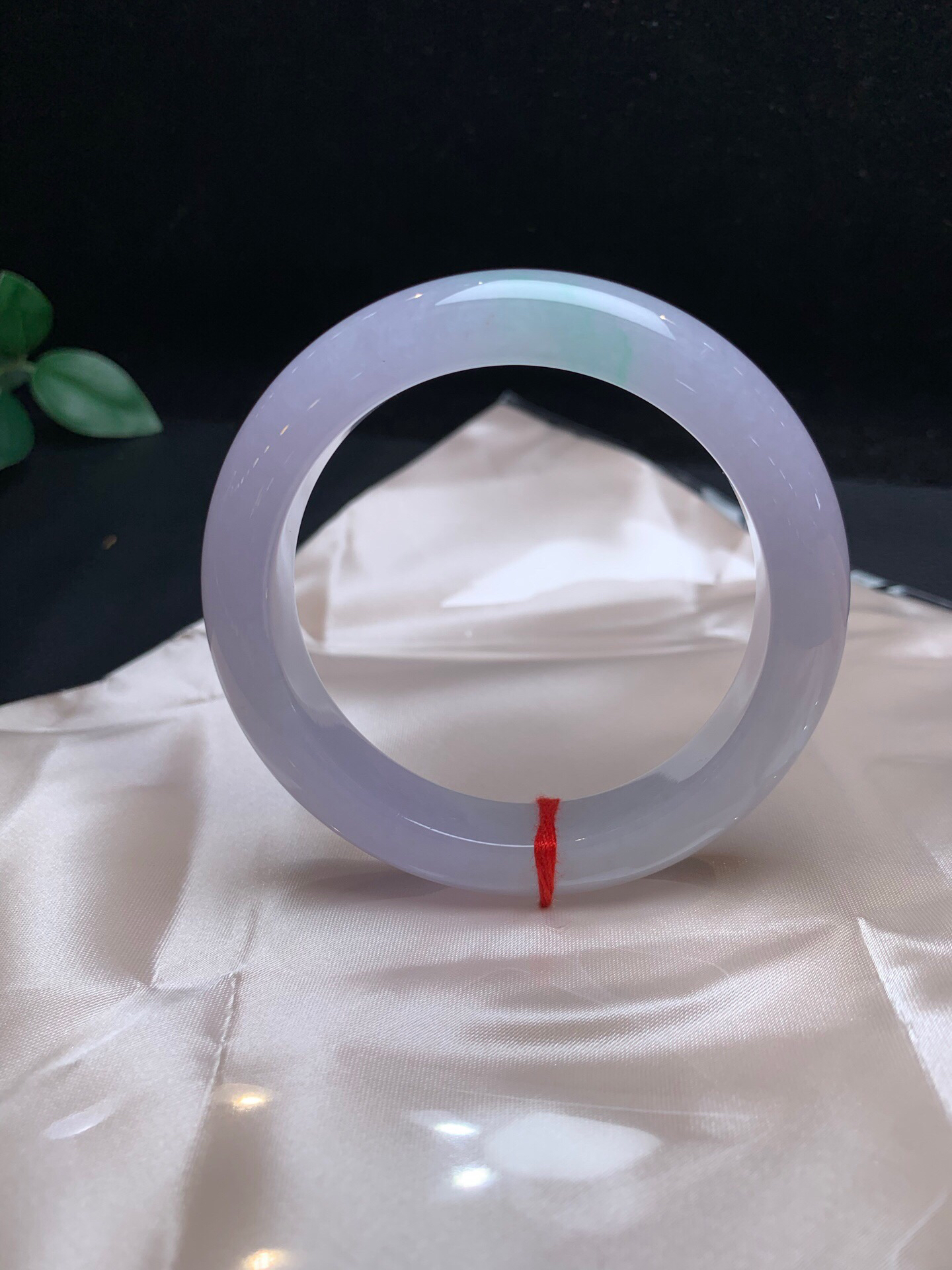 620297,55.5冰春彩手镯,冰紫底色飘一截清新绿,整条清新干净