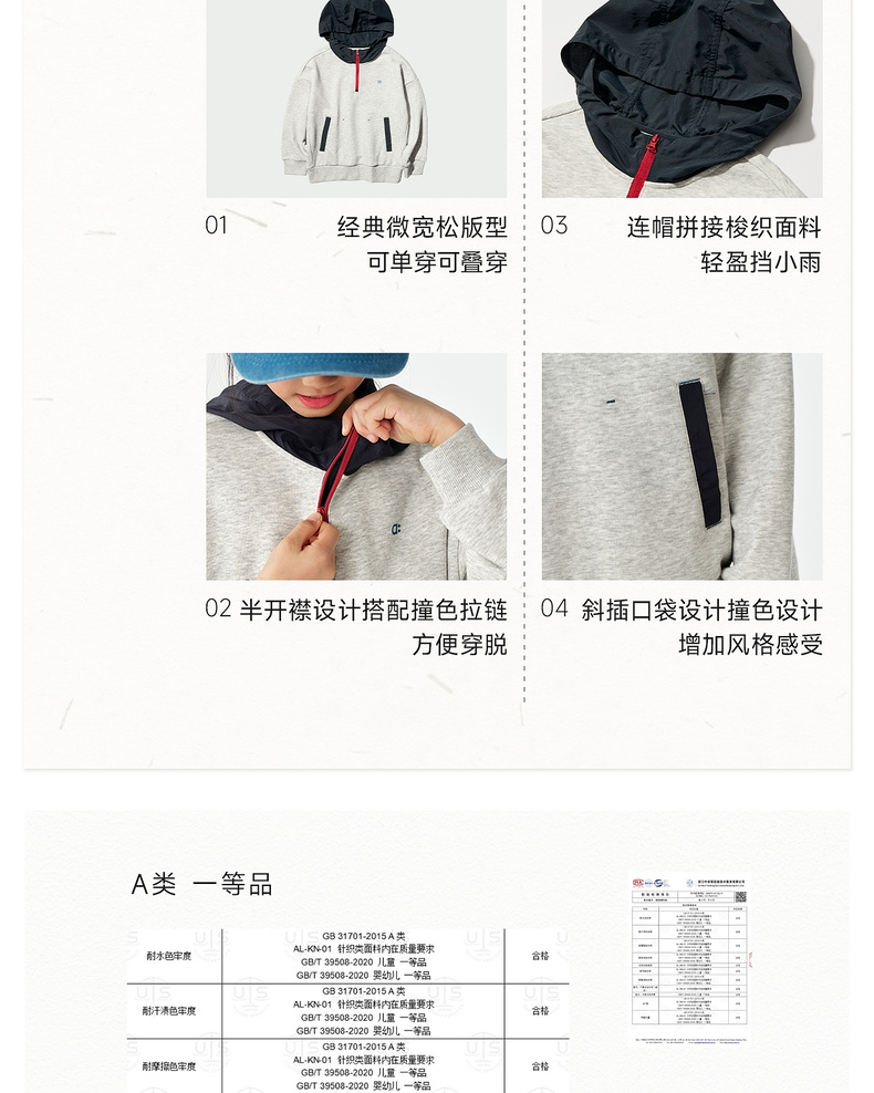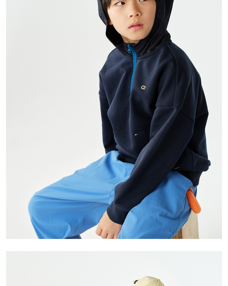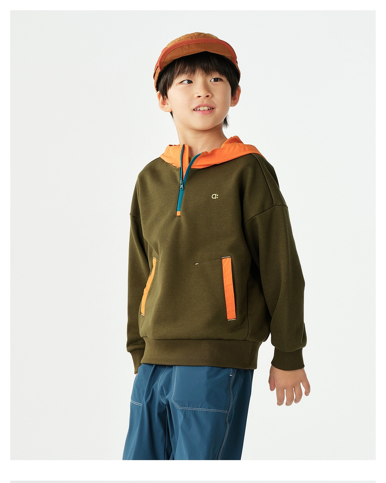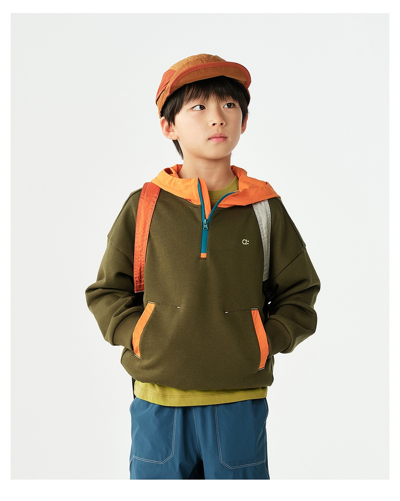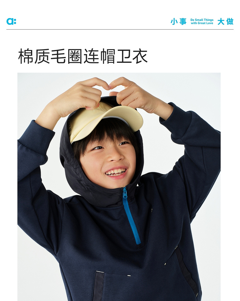 【春Vol.1】allblu幼岚【棉质毛圈连帽卫衣】儿童26春季新品撞色拼接柔软ZY