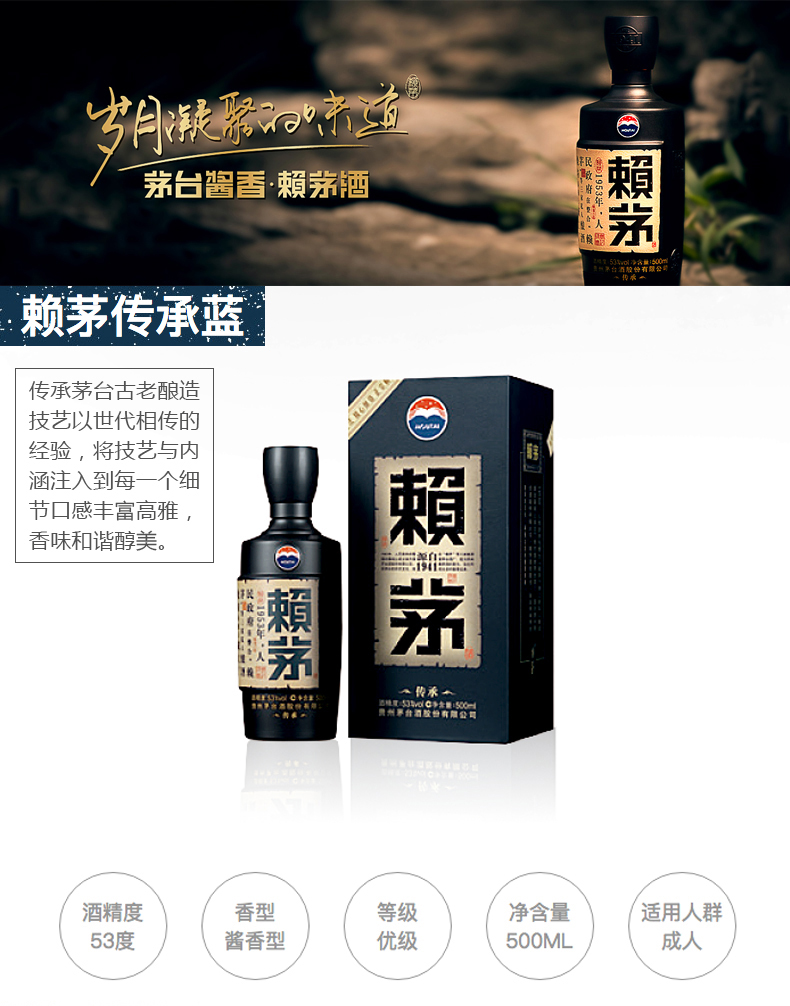 贵州茅台赖茅酒传承蓝酱香型白酒 500ml(53度)
