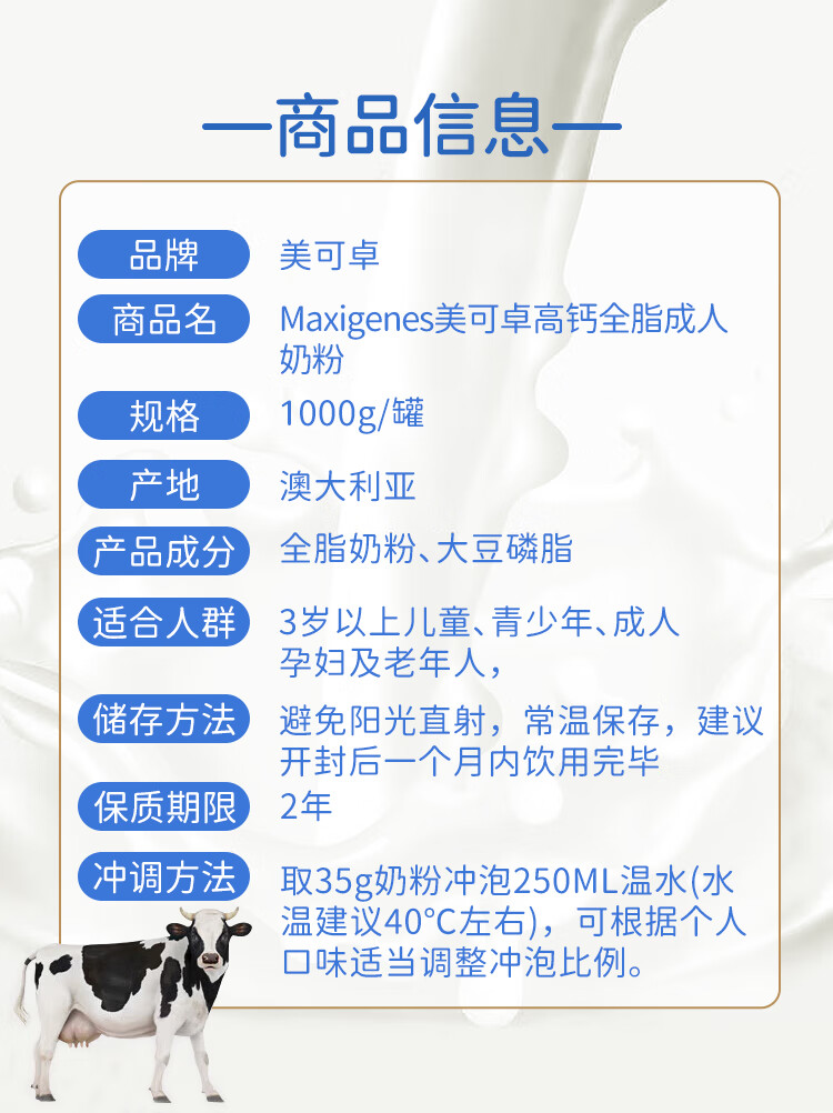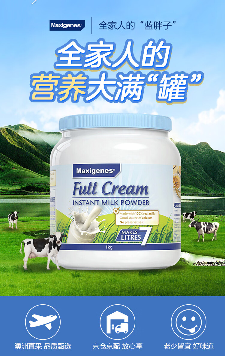 美可卓Maxigenes 蓝胖子成人全脂速溶高钙奶粉 1kg