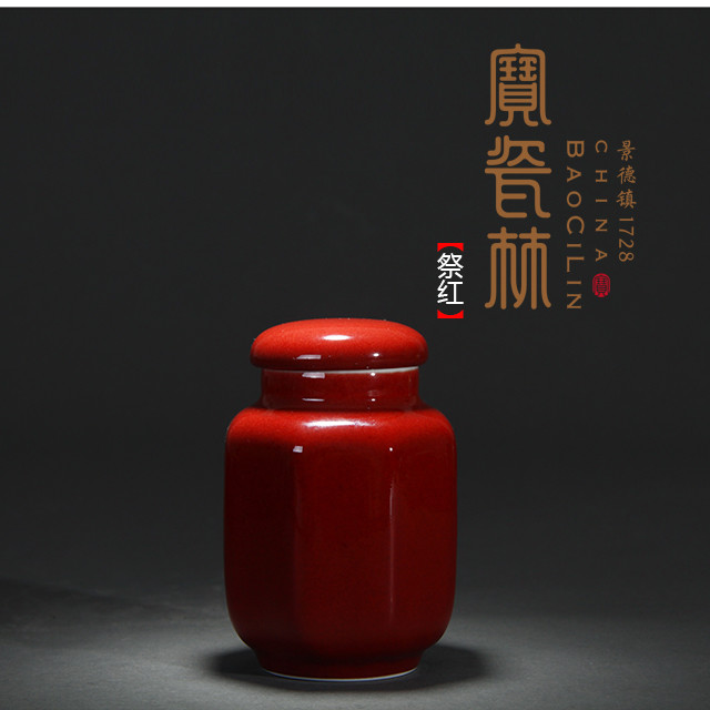 【宝瓷林】天青 豆青 明黄 紫金 祭红八方茶叶罐