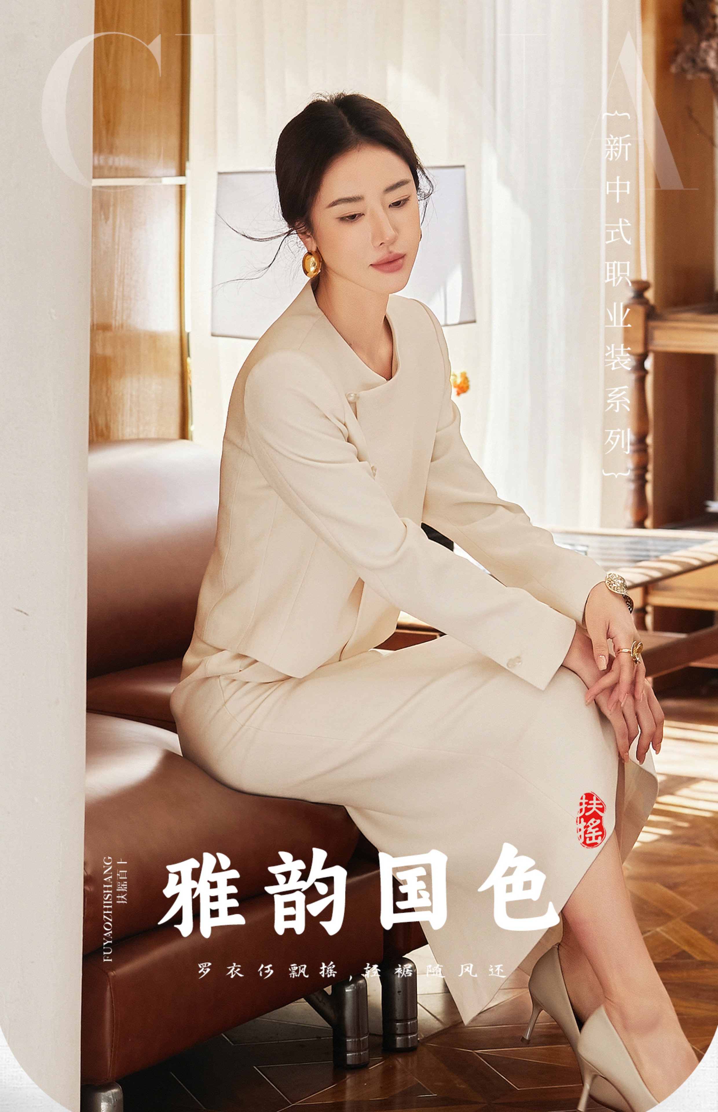 FUYAO扶摇 国风西装外套女2025新款圆领盘扣短外套新中式轻奢高端