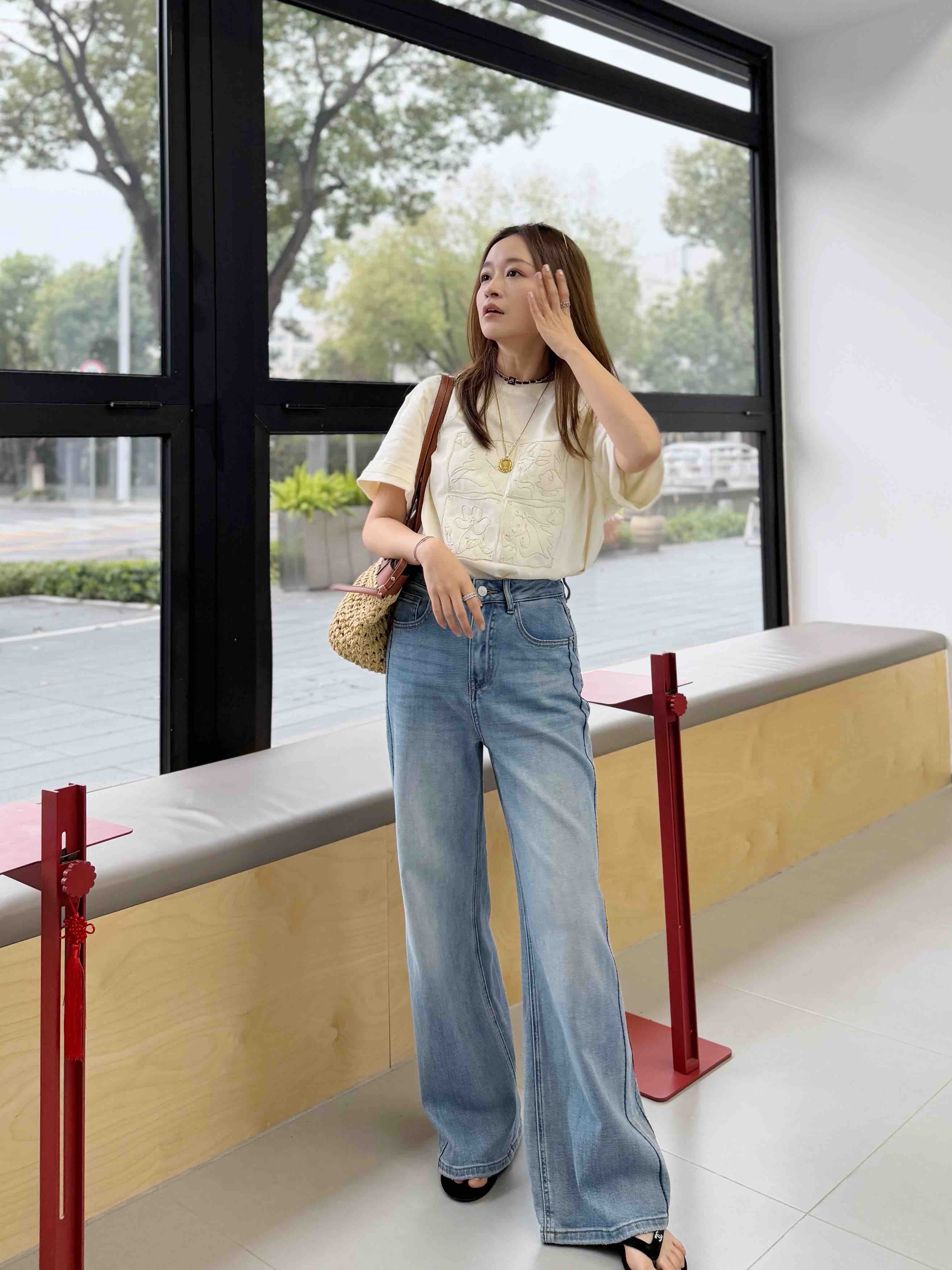 静静100斤 上身S码,比较宽松,可以直接穿打底裤